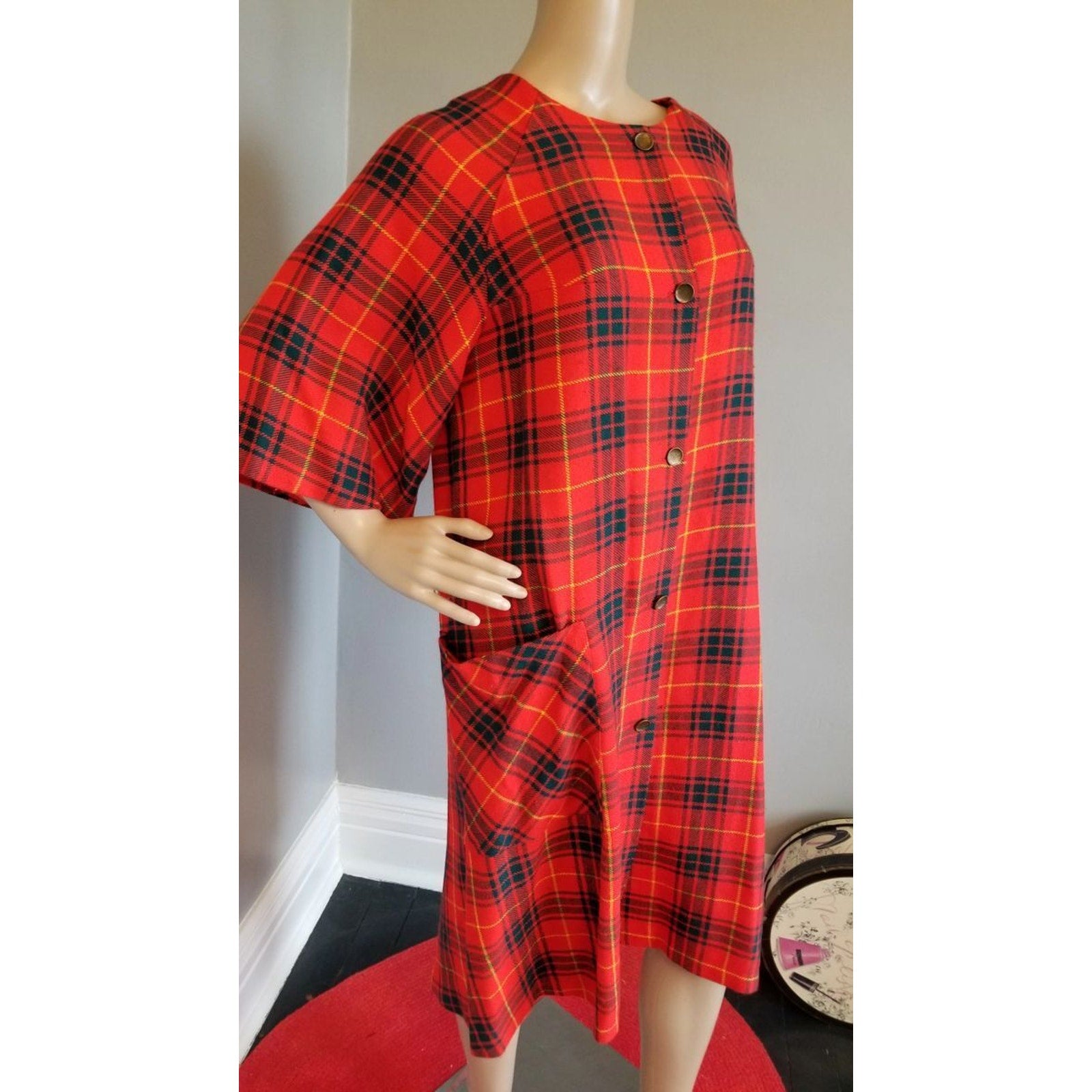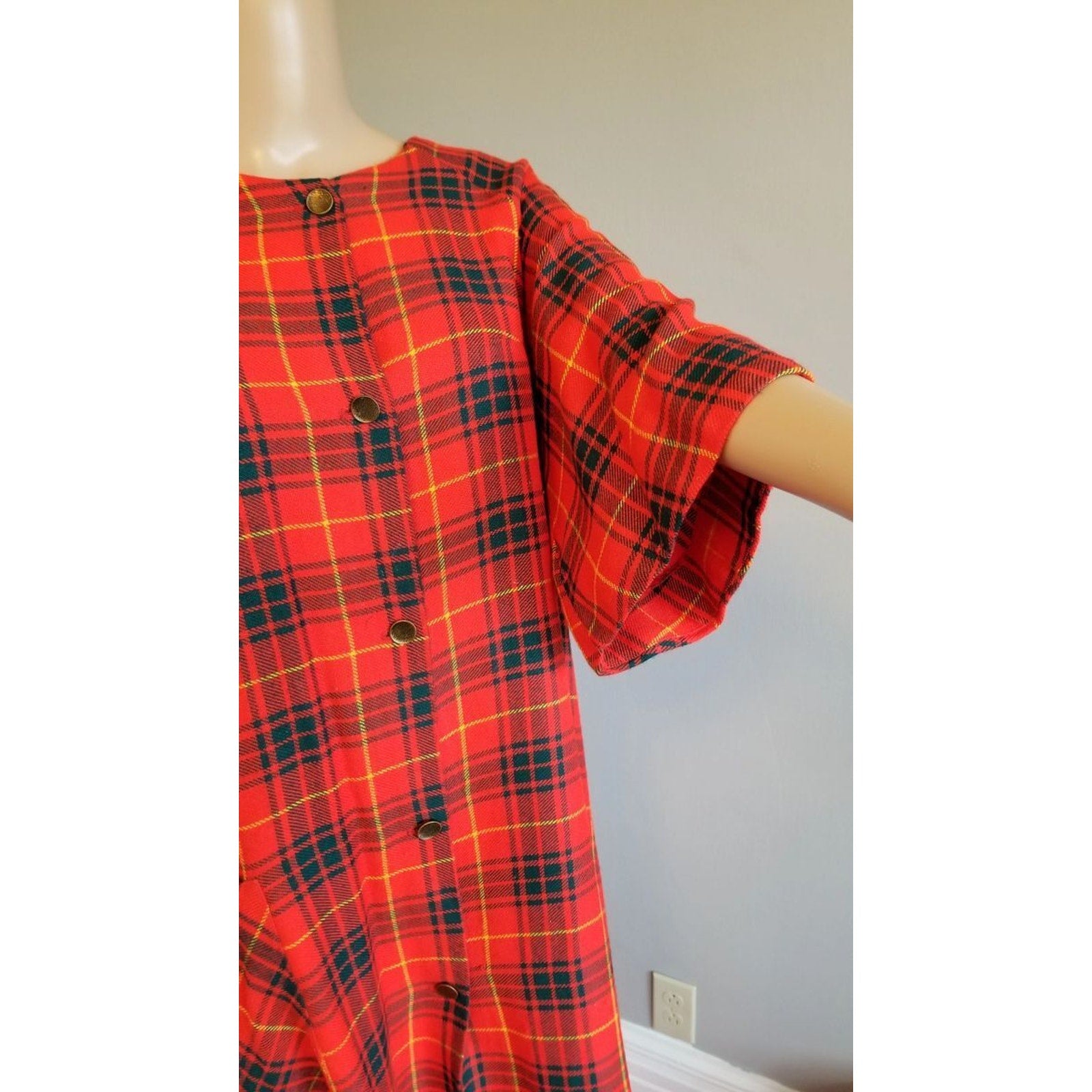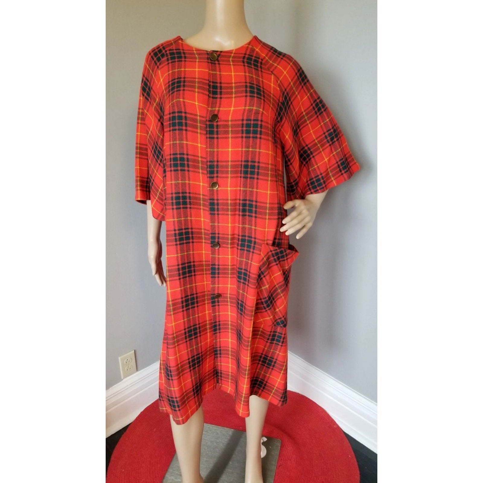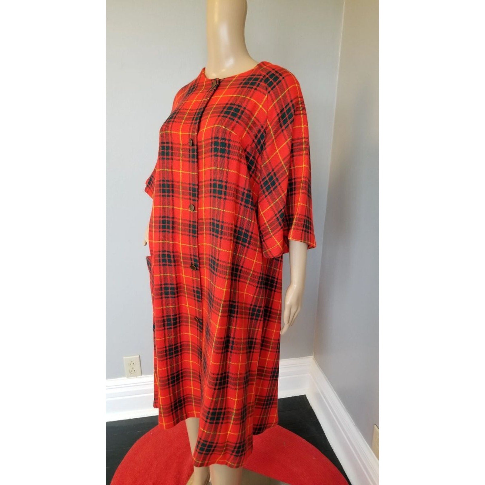 60s Vintage Plaid Robe in Red, Gold and Green - M/L