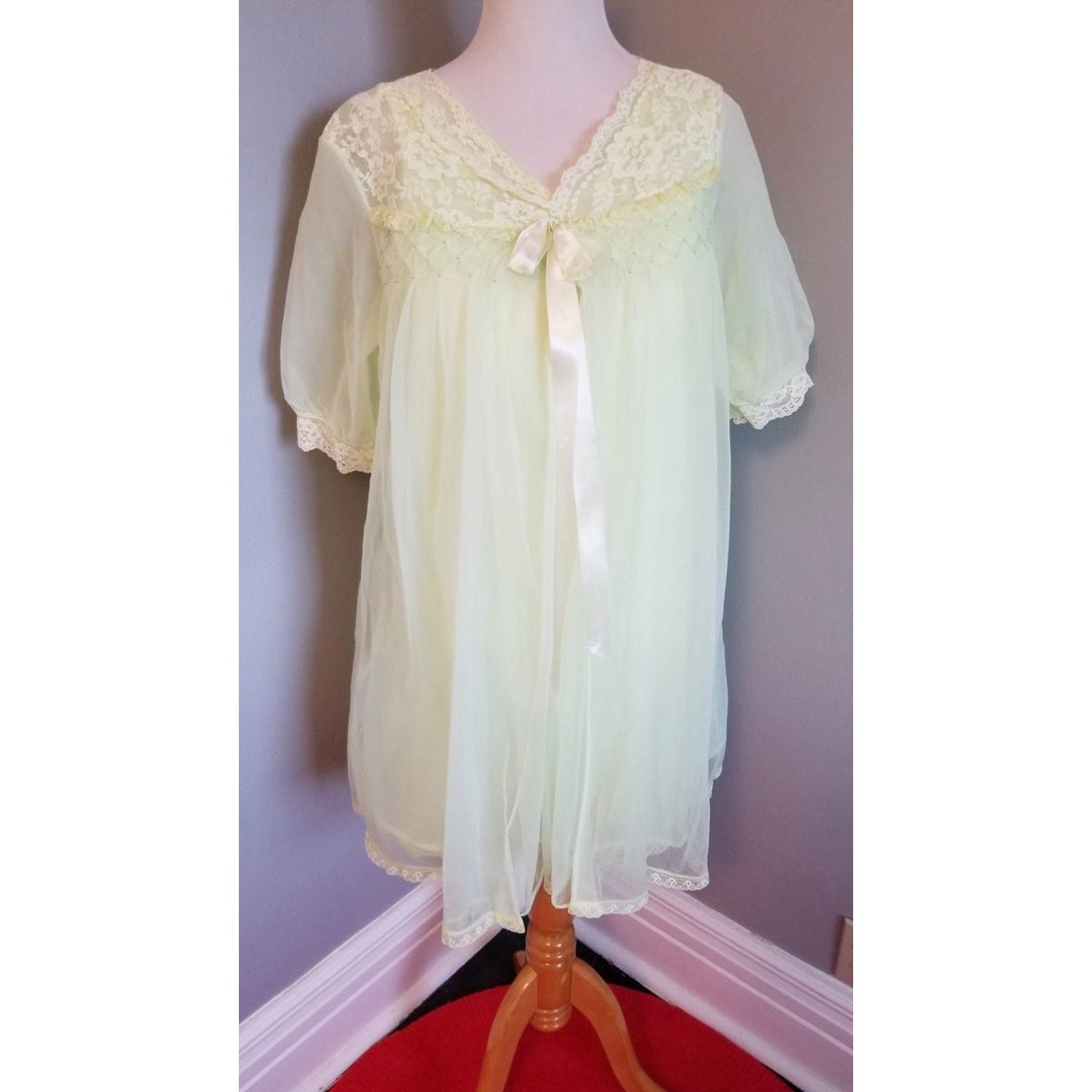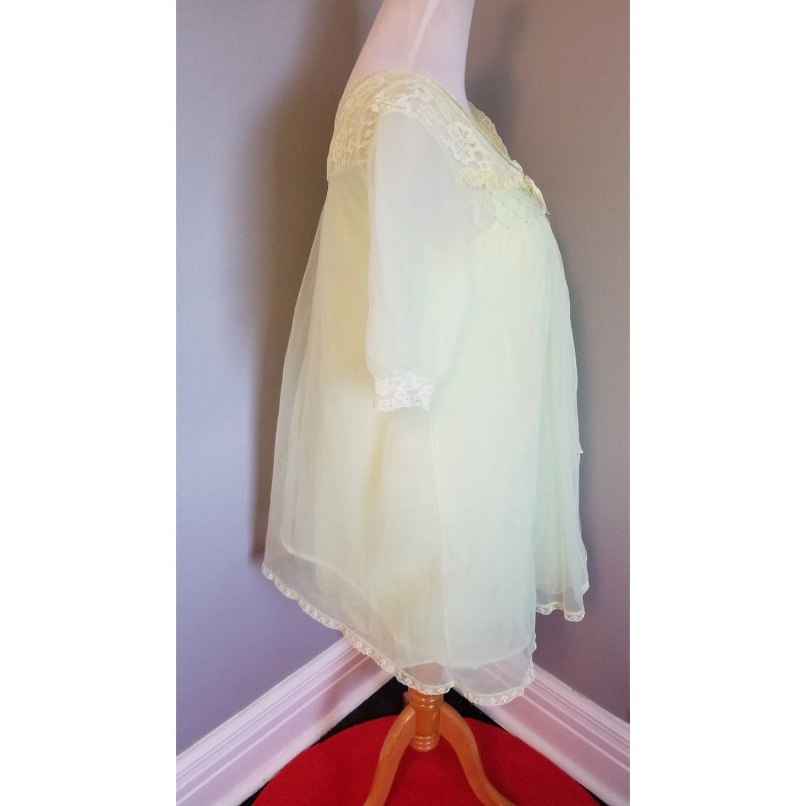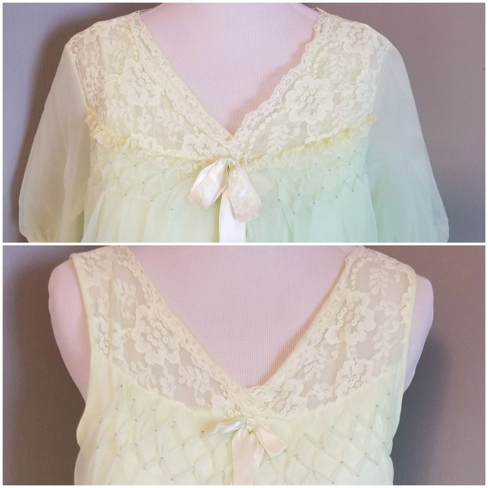 60s Vintage Radcliffe Babydoll Peignoir Set Lingerie in Chartreuse Nylon - M