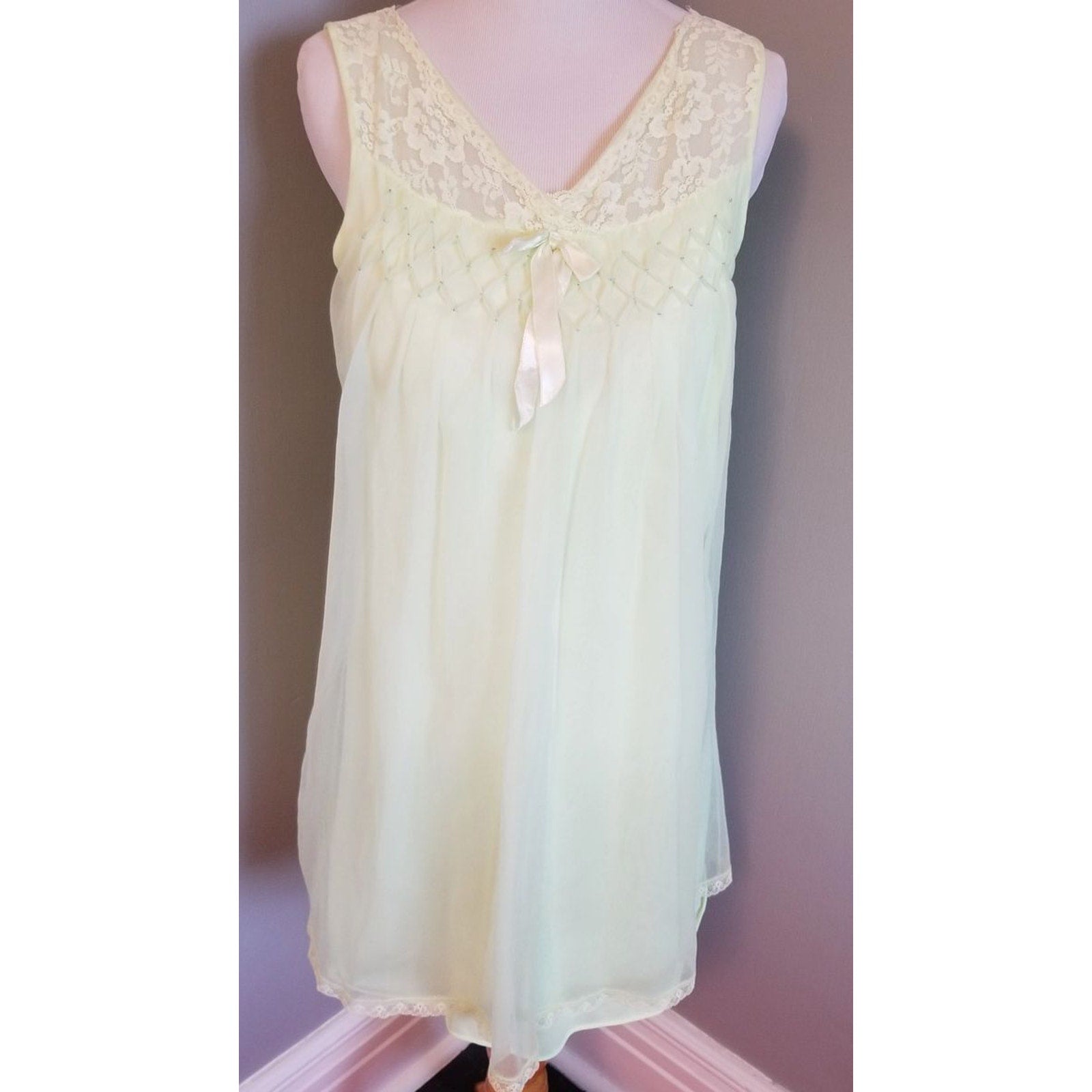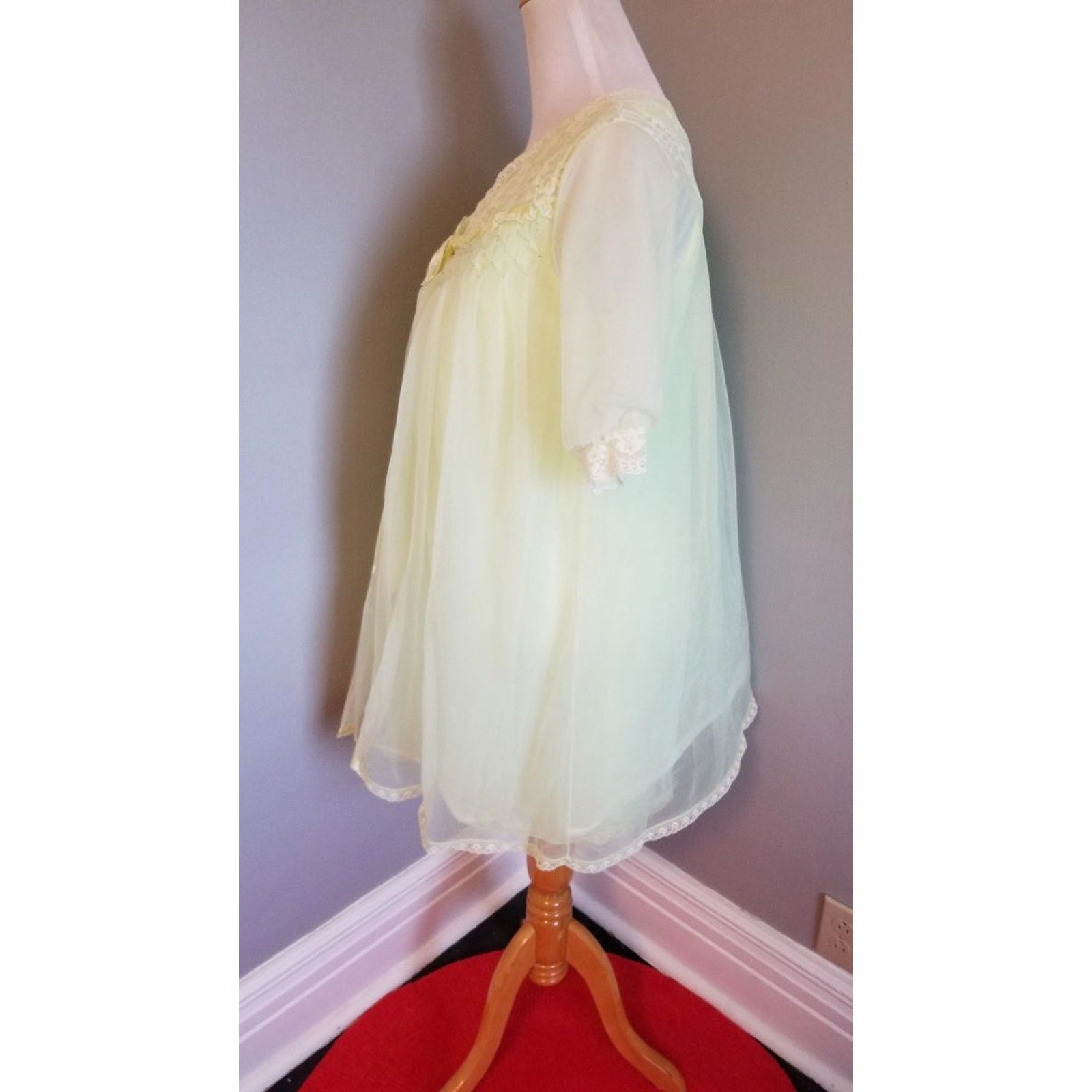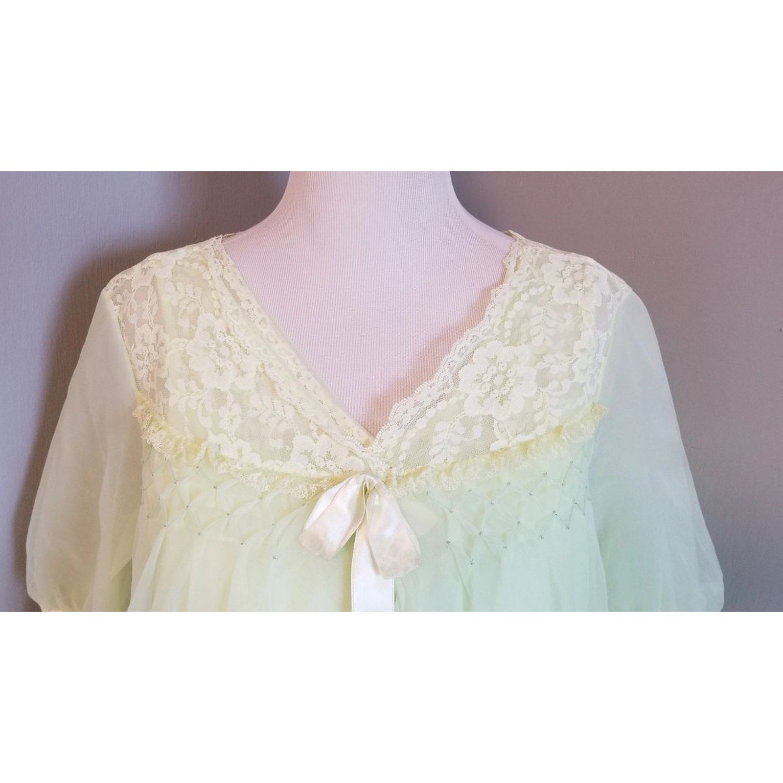 60s Vintage Radcliffe Babydoll Peignoir Set Lingerie in Chartreuse Nylon - M