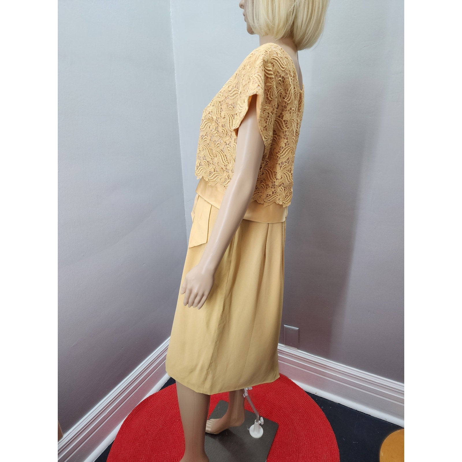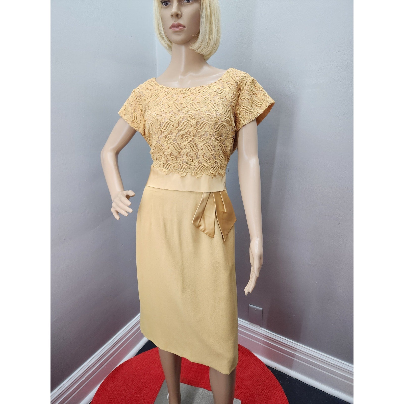 60s Vintage Renmor Gold Wiggle Illusion Dress - L