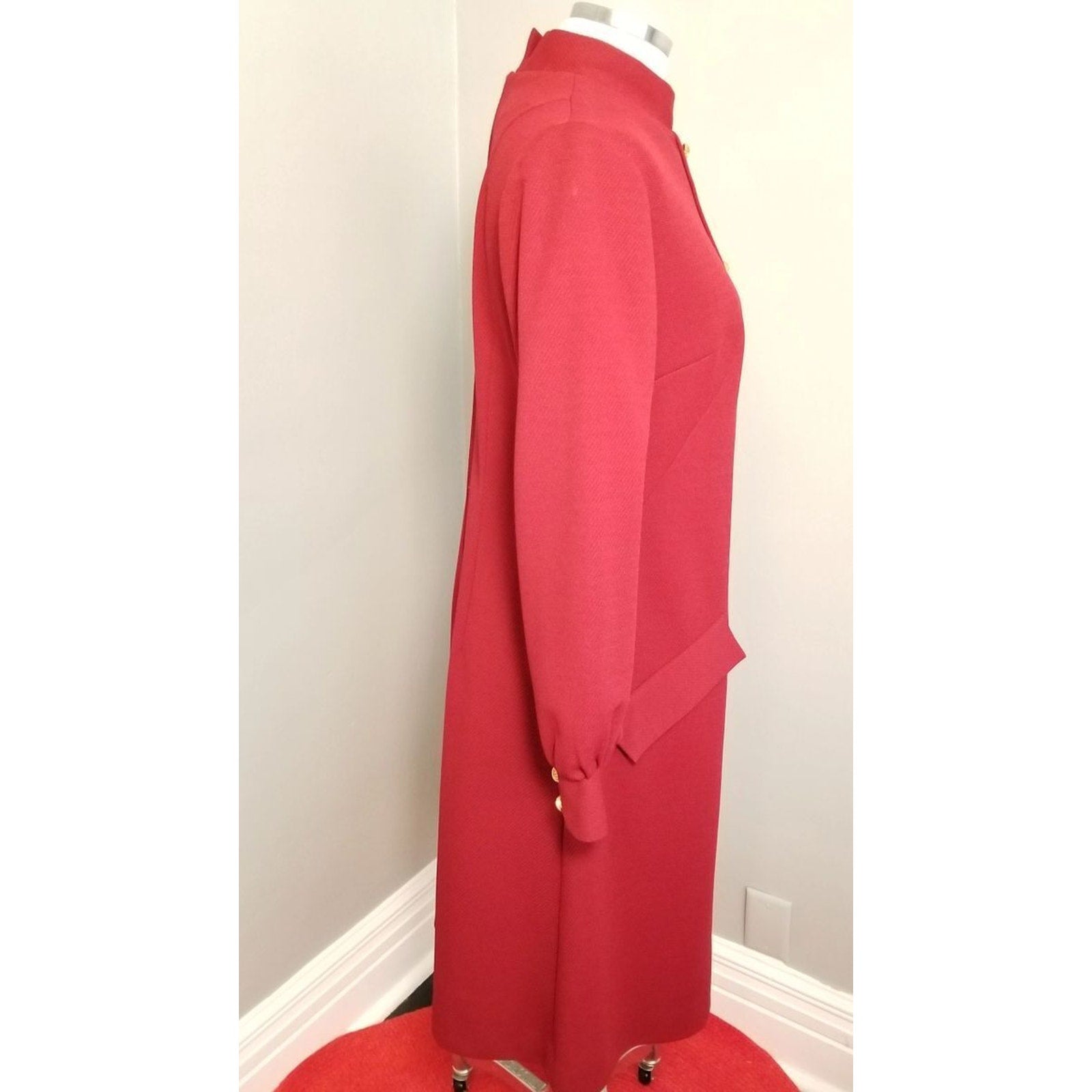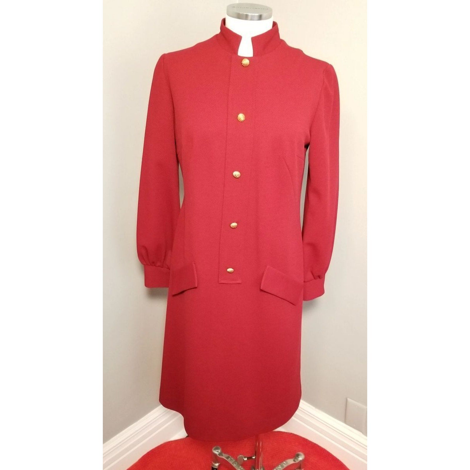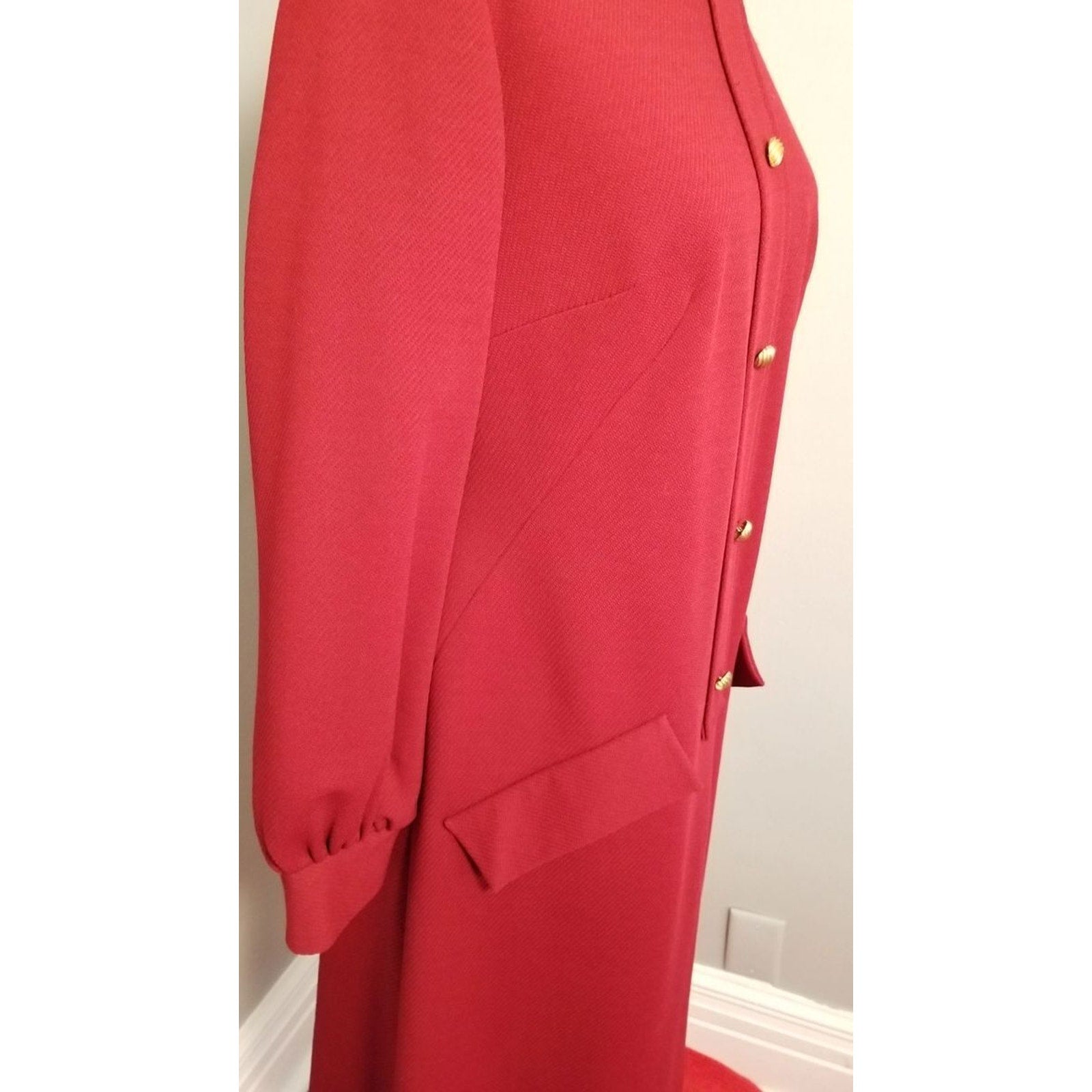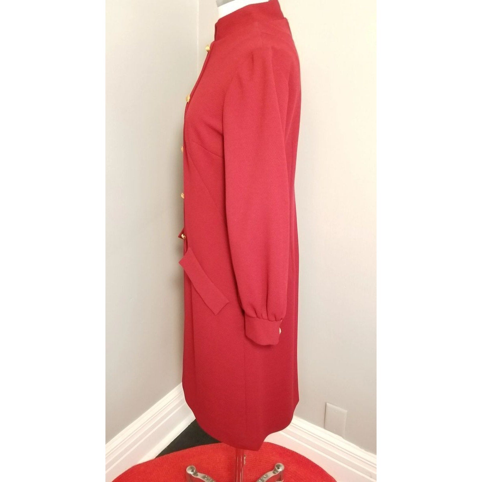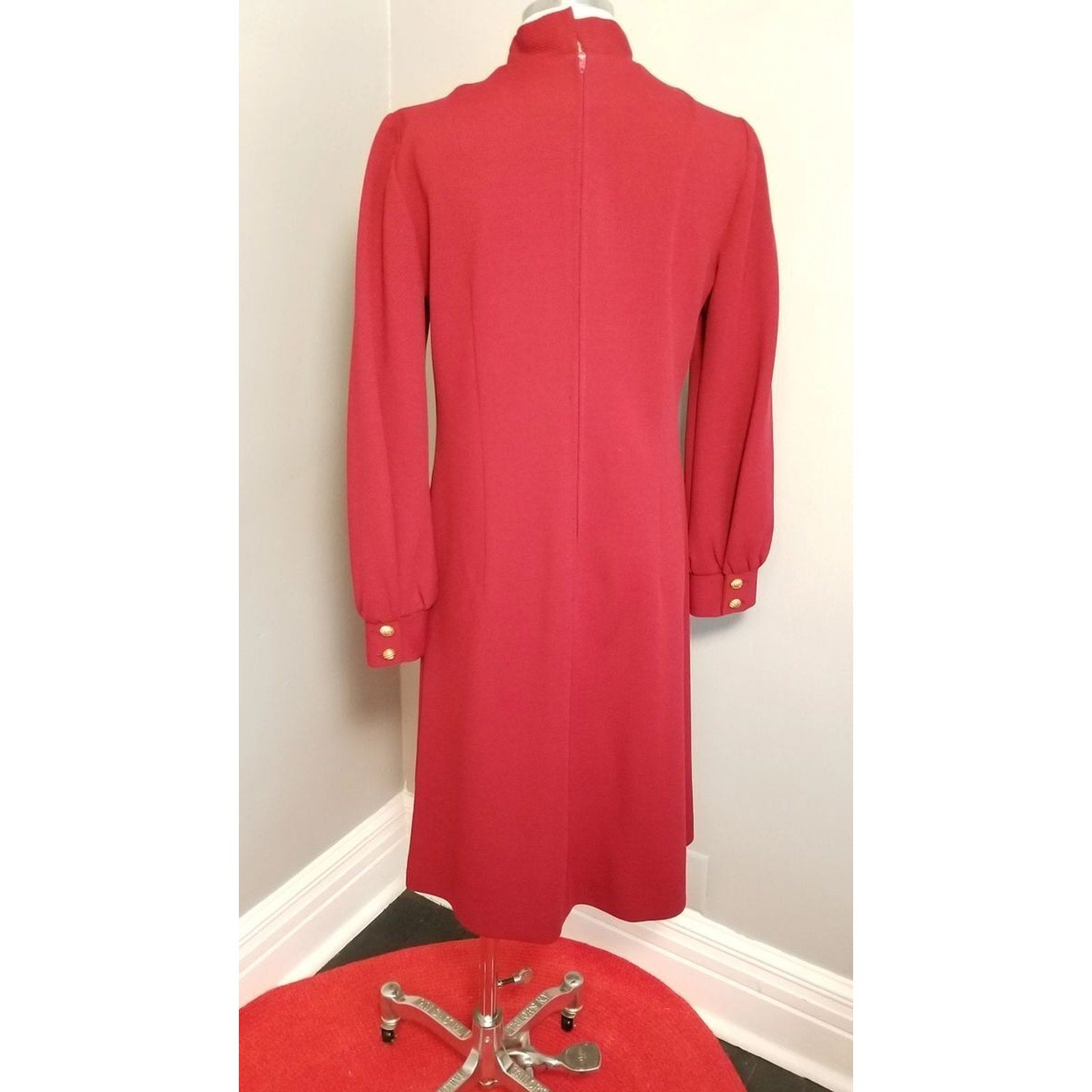 70s Vintage Deep Red Shift Dress, Buttons and Pockets - M