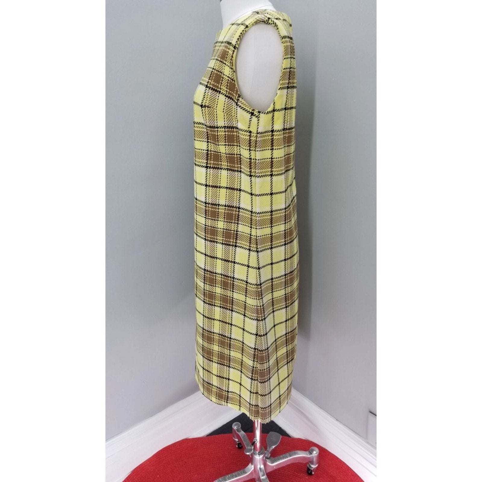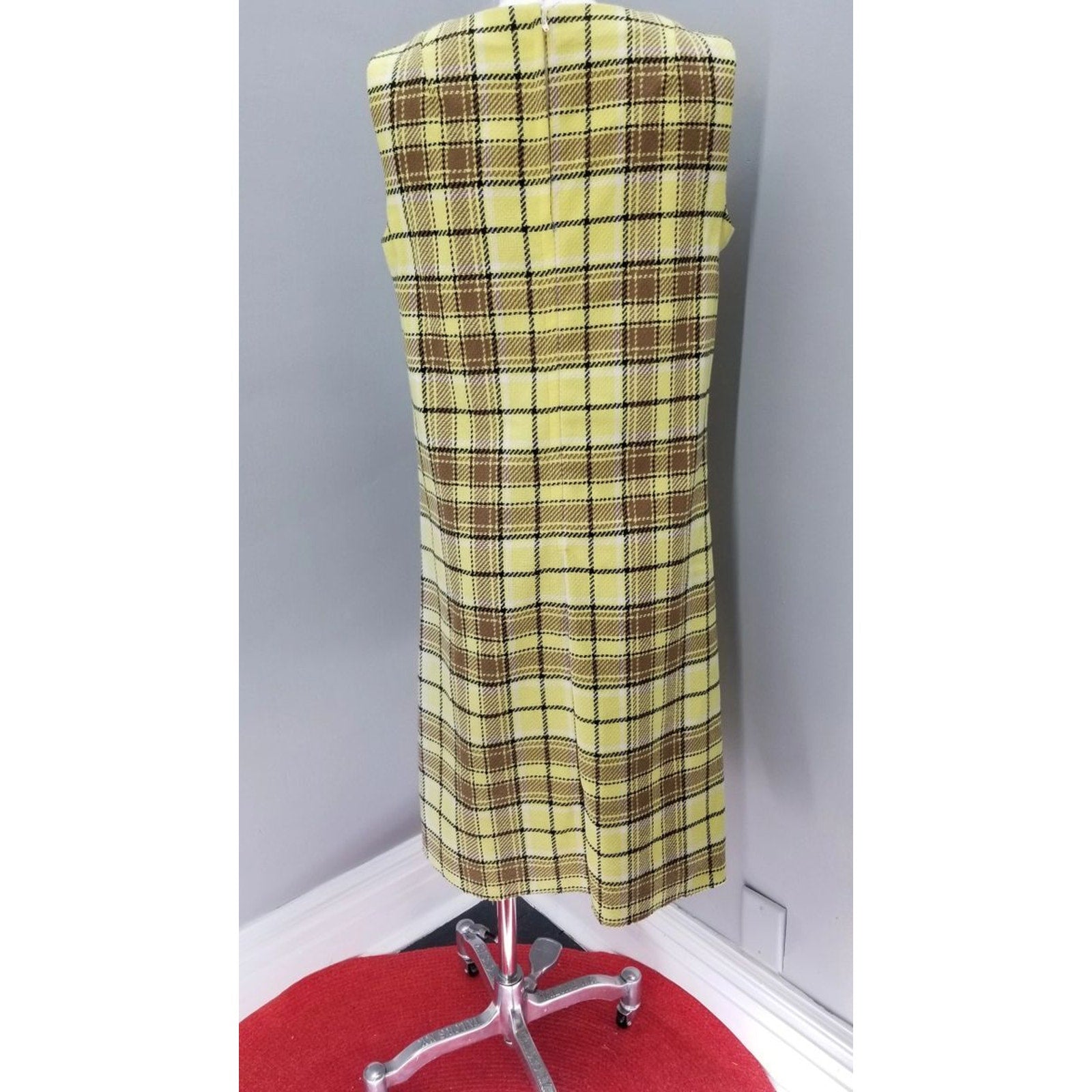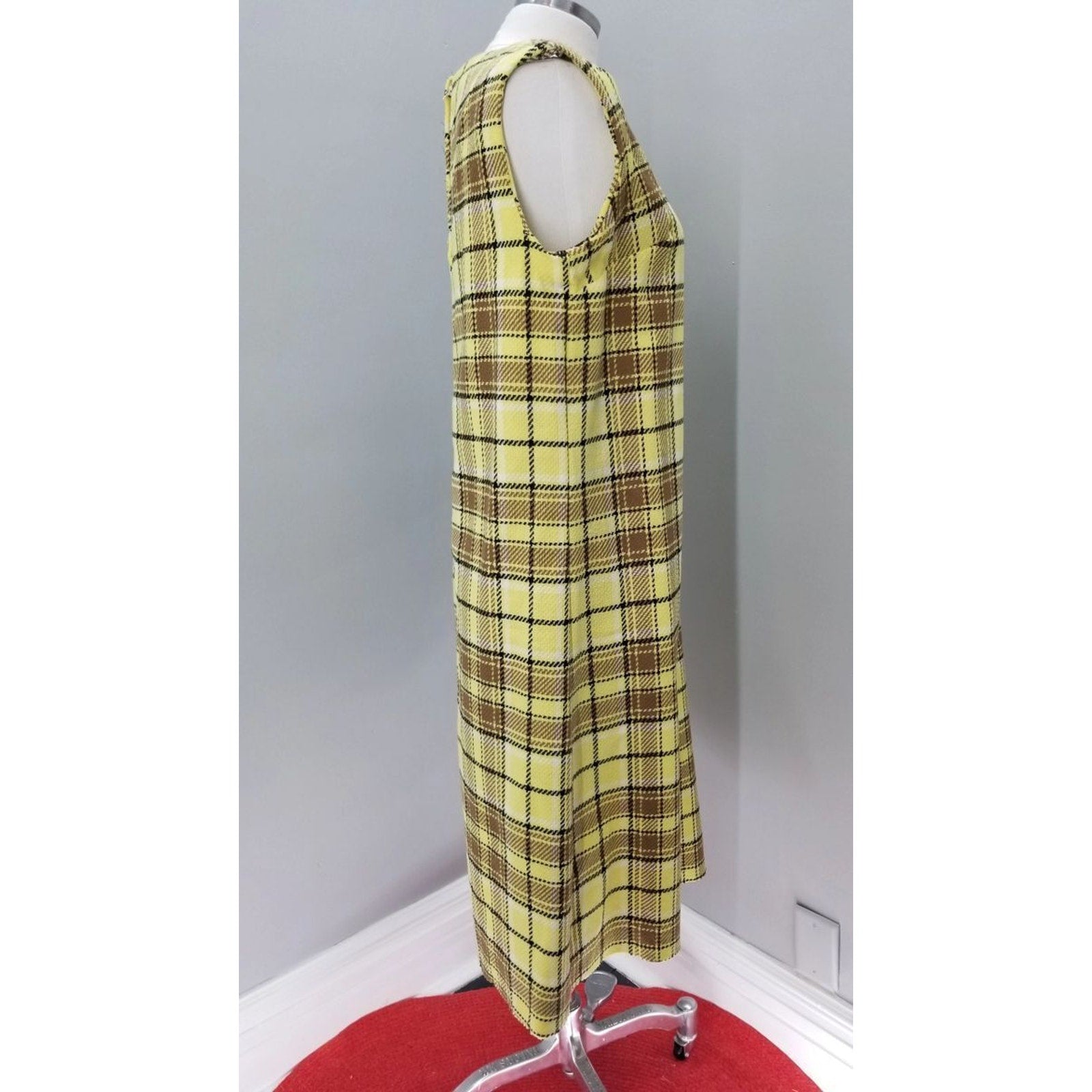 70s Vintage Handmade Plaid Shift Dress / Jumper Yellow, Tan, Black - L