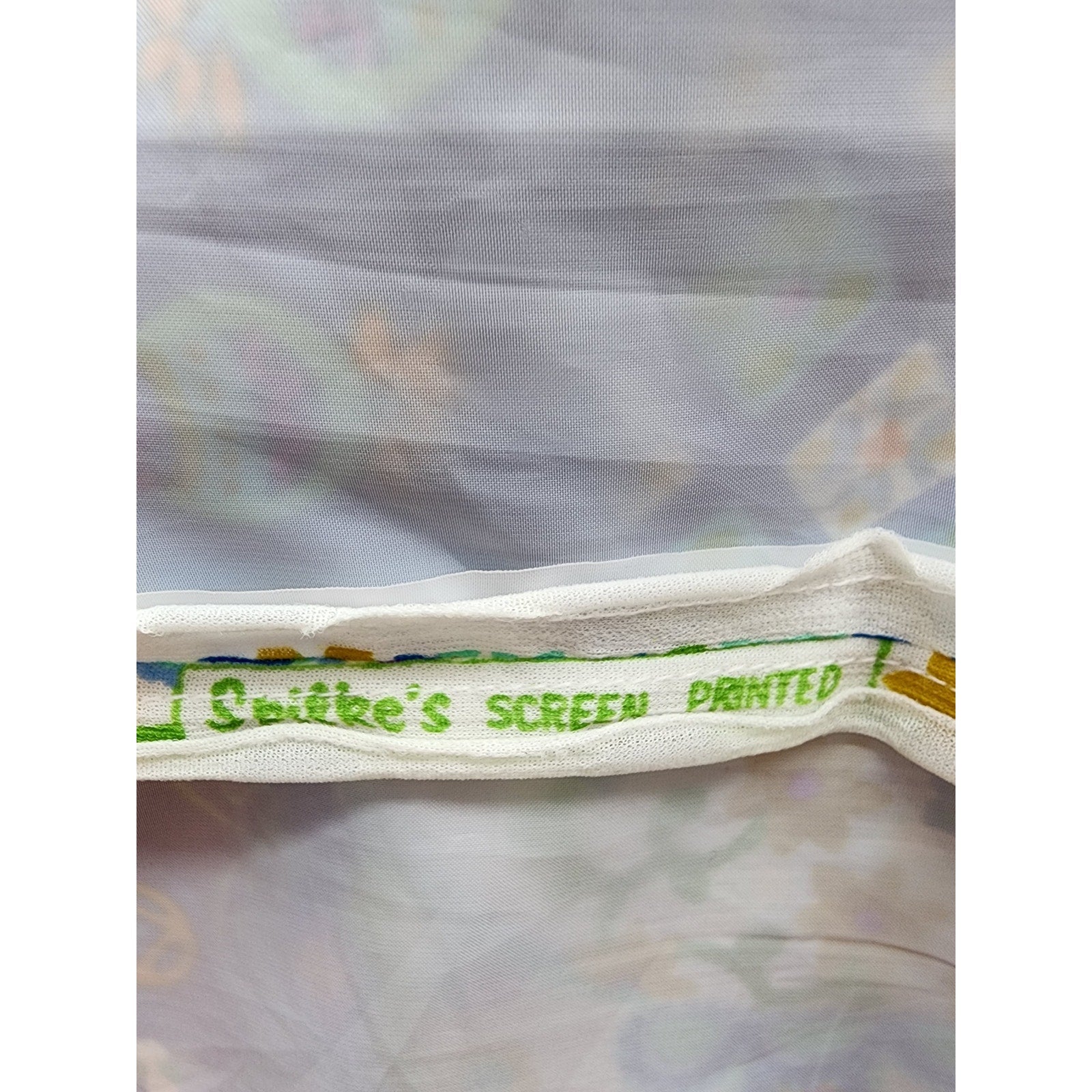 Bright and fun Spilke's Screen Print (60s/70s) fabric that looks like patchwork with colors of blue, orange, avocado, purple, cream and more.