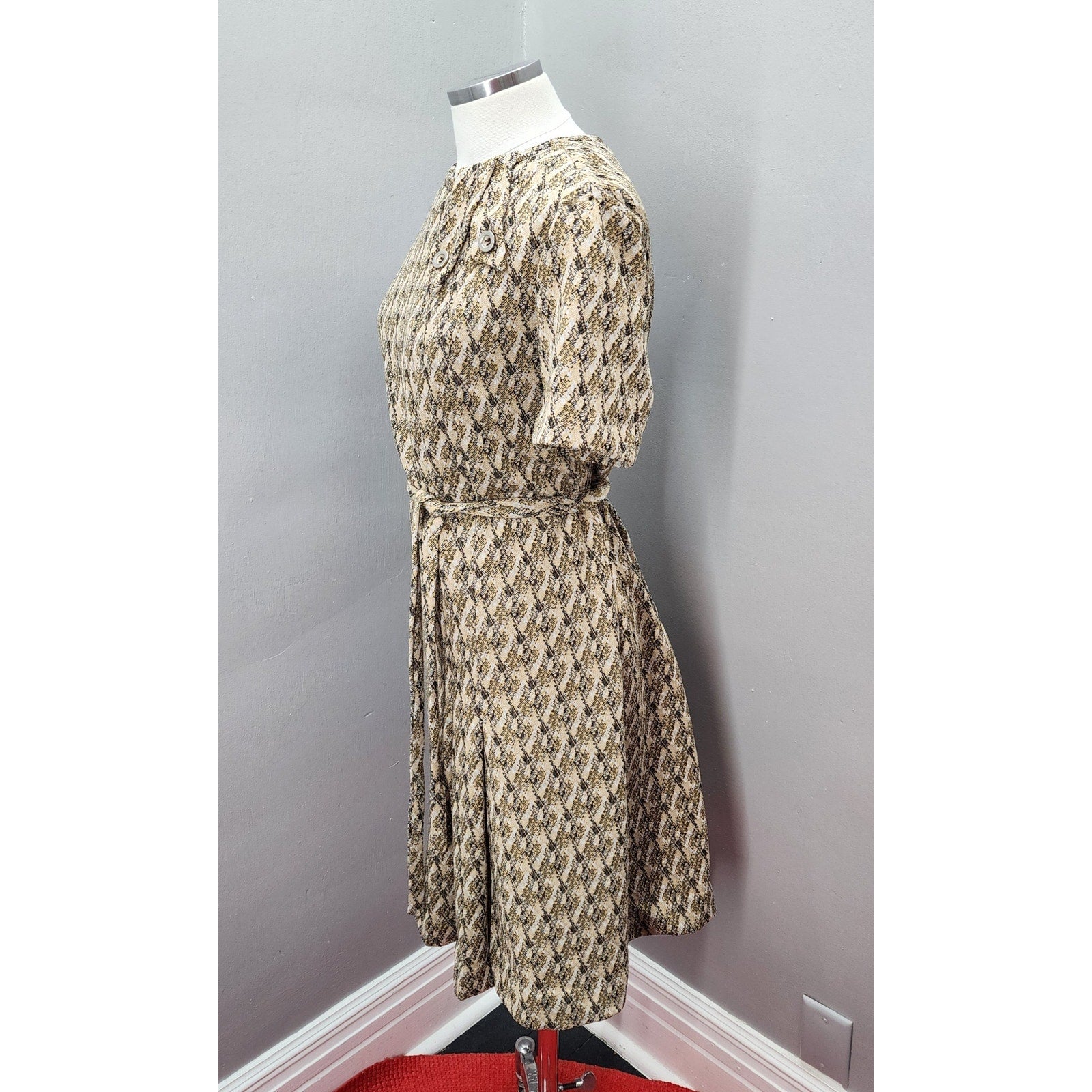 70s Vintage Korell Shift Dress In Cute Abstract Design - XL