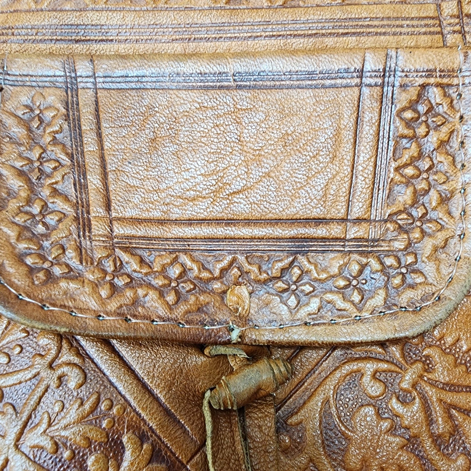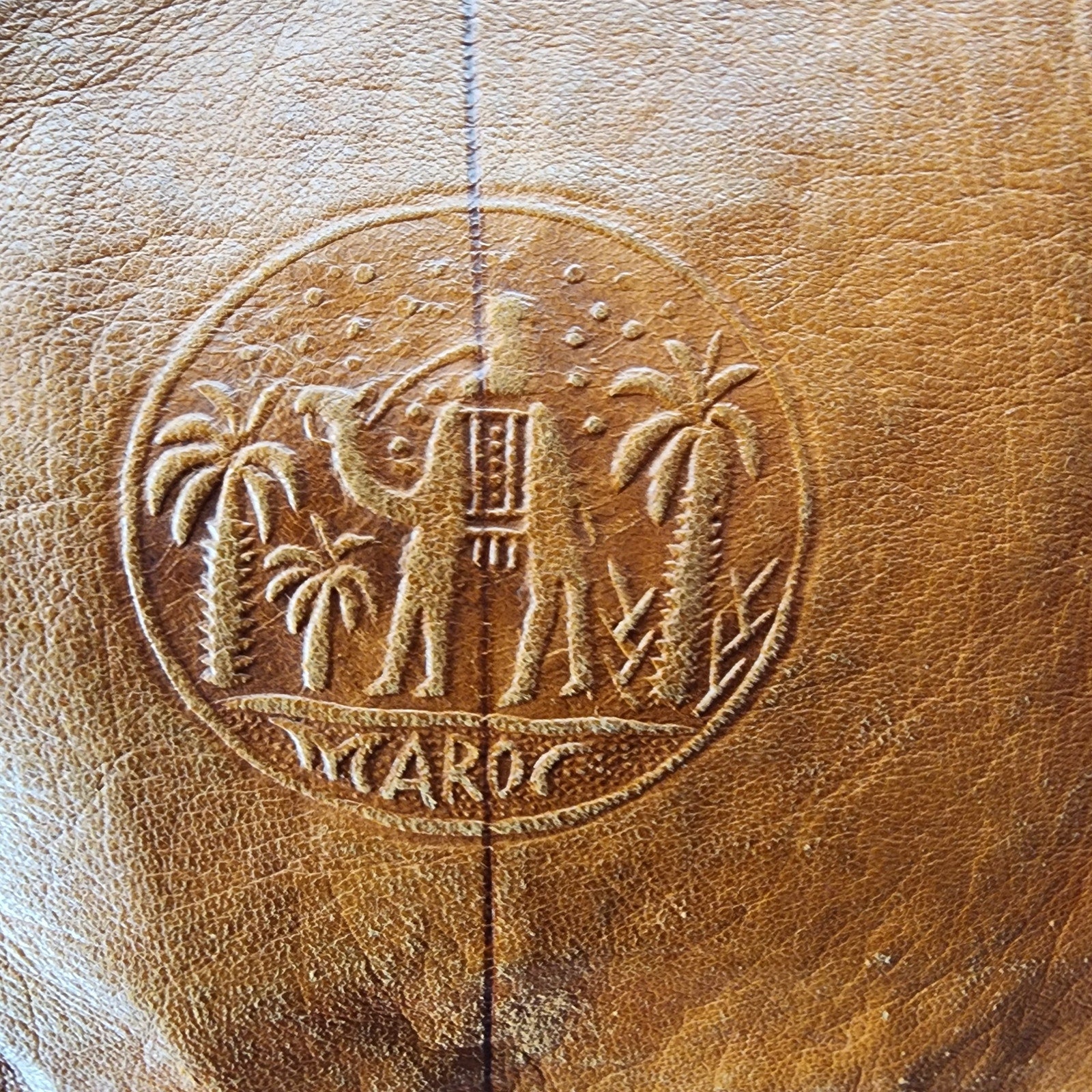 Handmade, hand tooled, Moroccan leather purse. Back side embossing reads "MAROC".