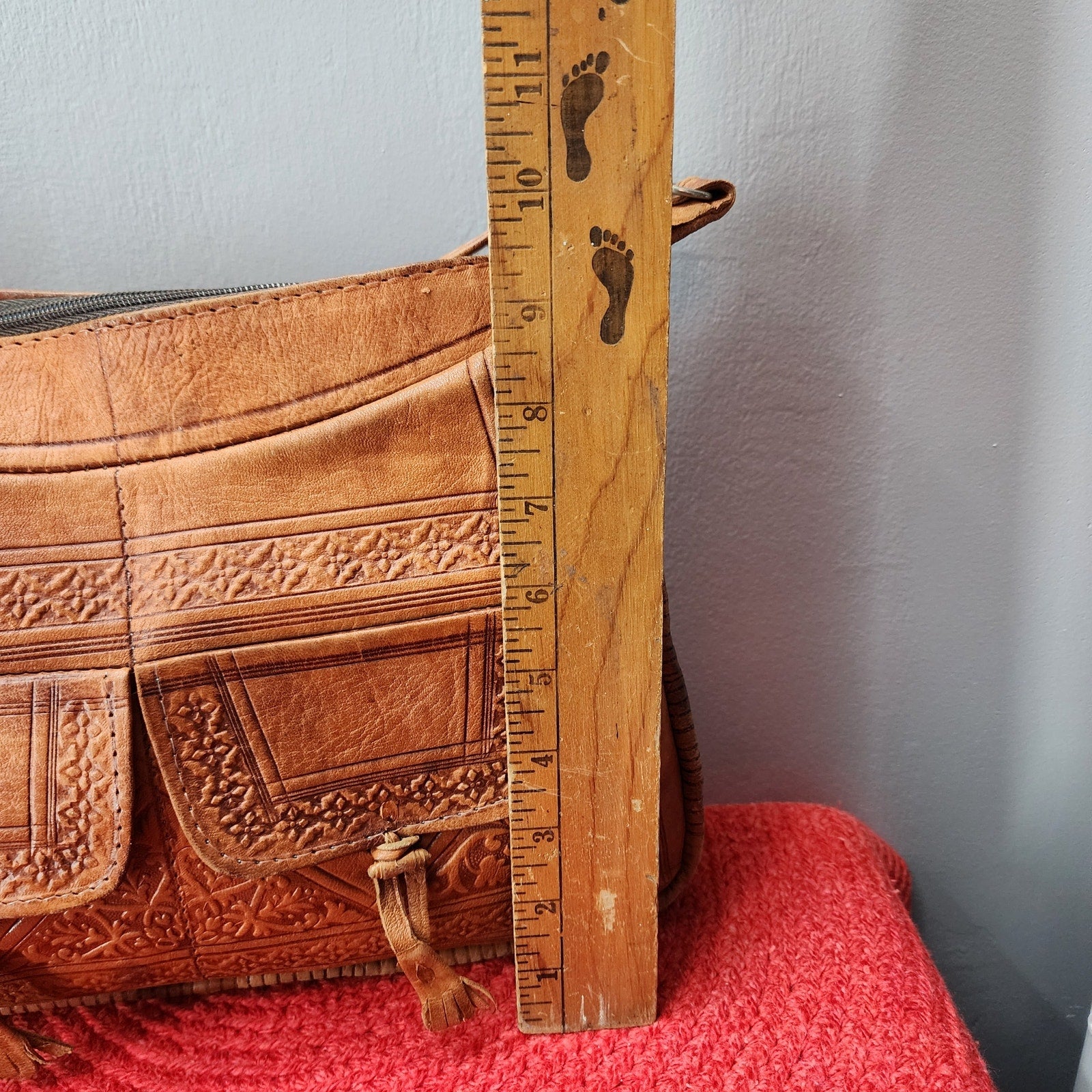 70s Vintage "MAROC" Leather Embossed Shoulder Purse, Large