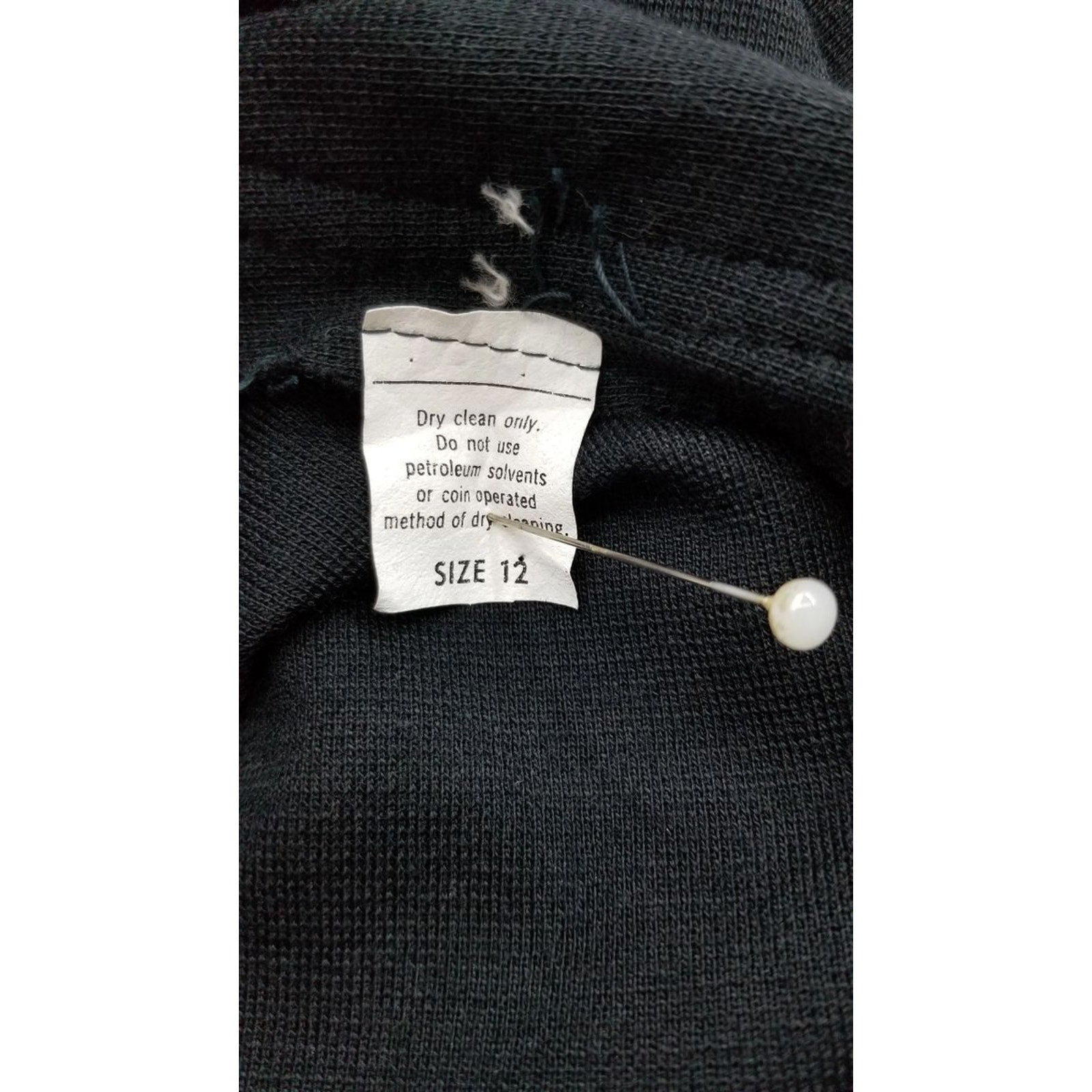 70s Vintage R&K Knits Classic Black with White Stitching Shift Dress - M