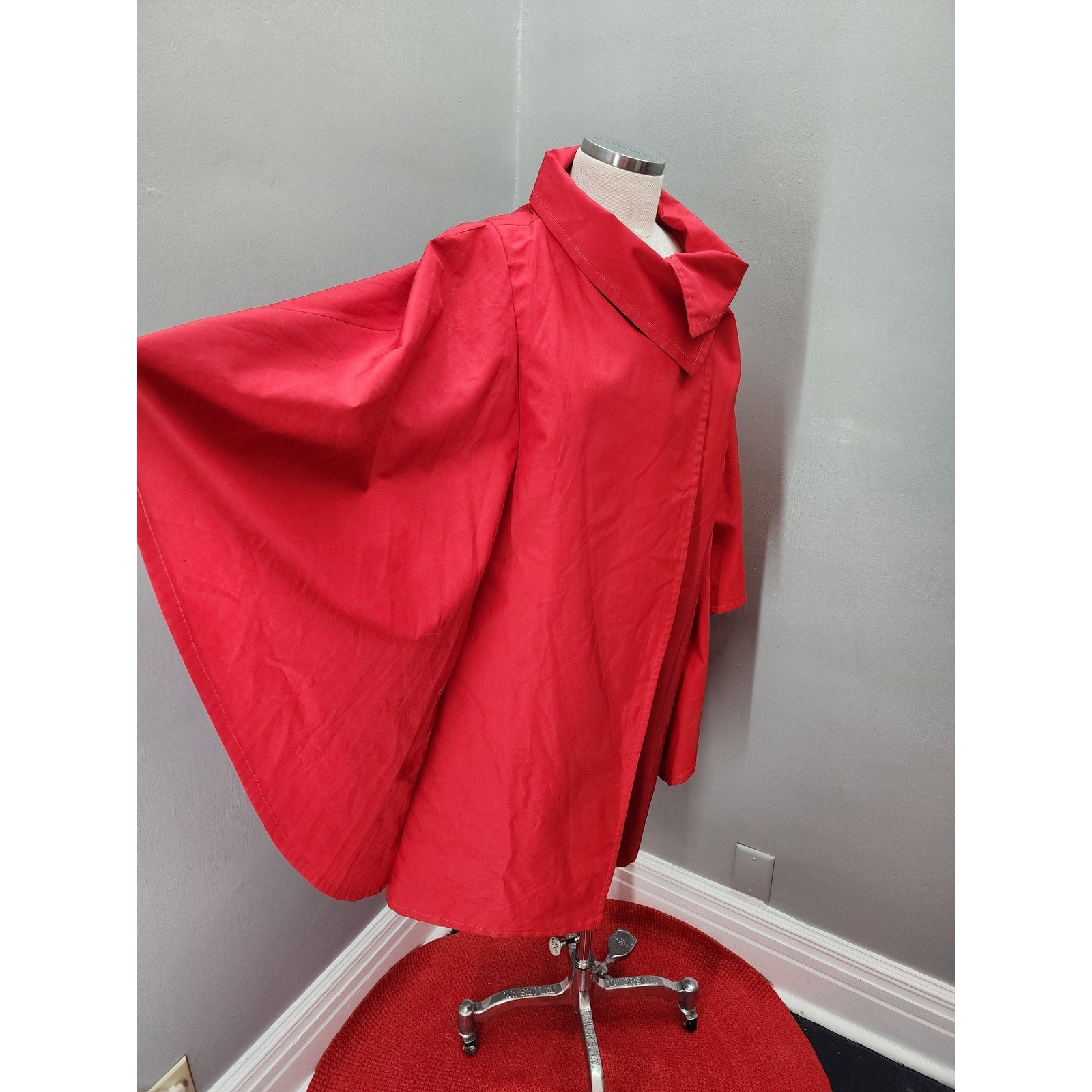 70s Vintage Red Angel Sleeve Rain Coat / Overcoat - L