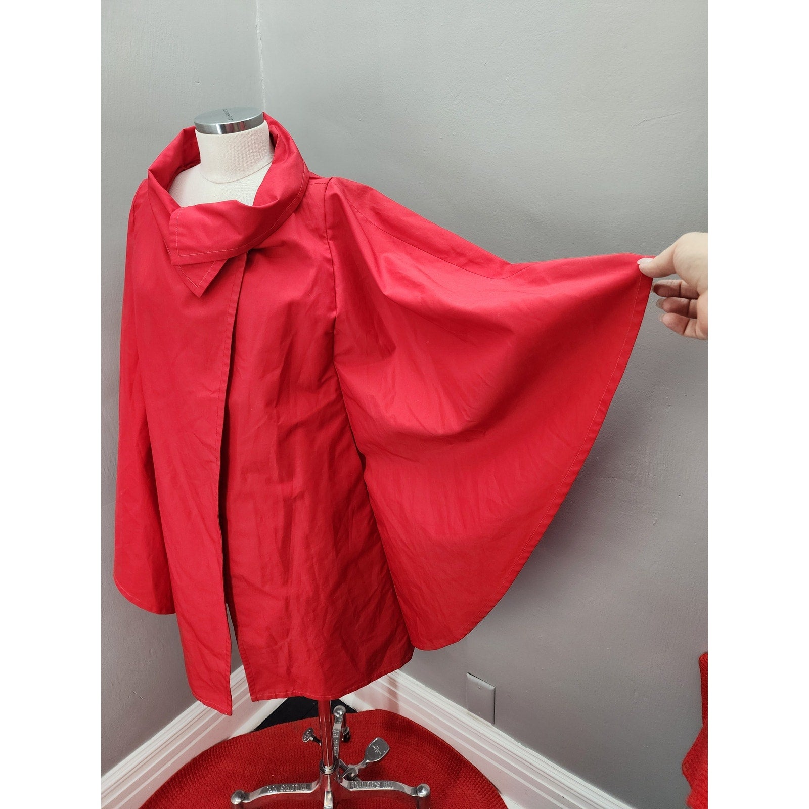70s Vintage Red Angel Sleeve Rain coat / Overcoat - L