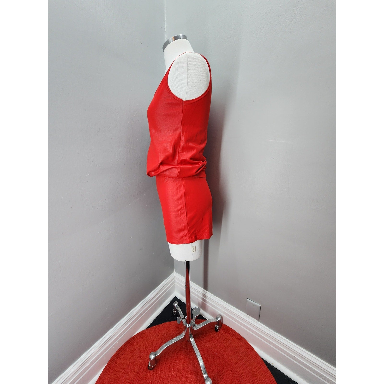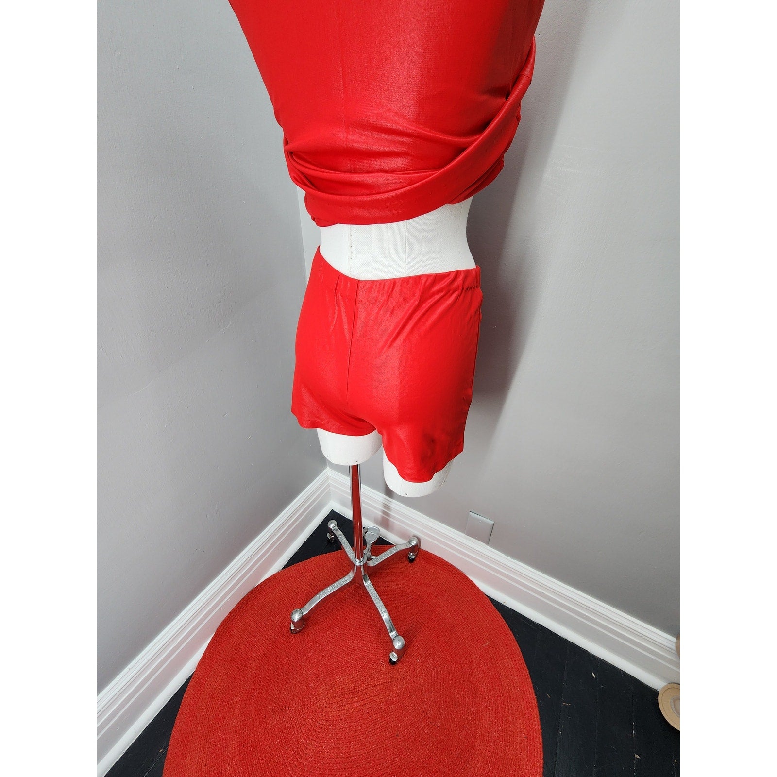 70s Vintage Red Hot Wet Look Tank & Hot Pants - S