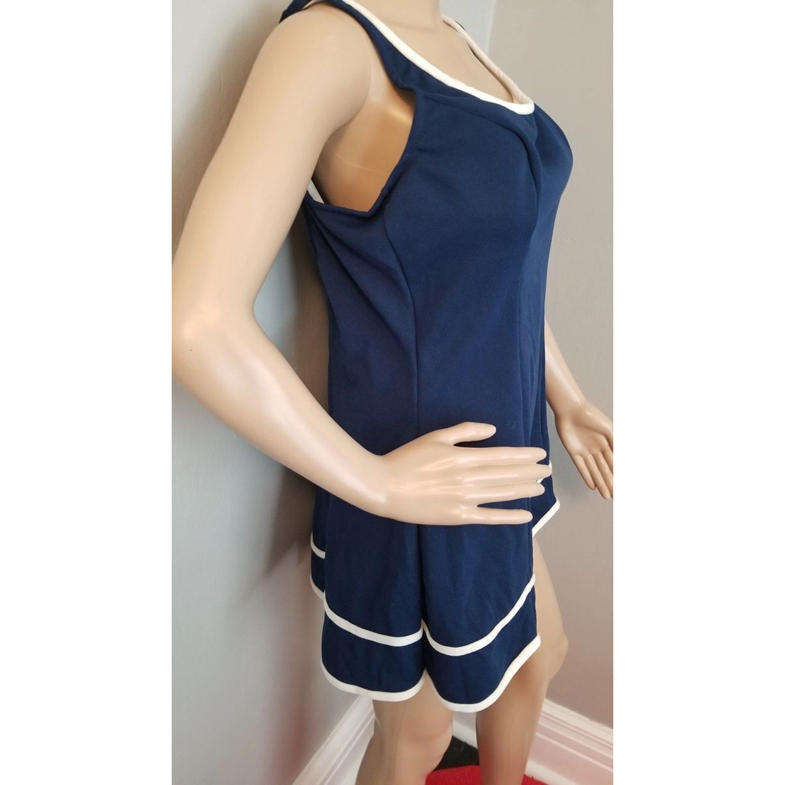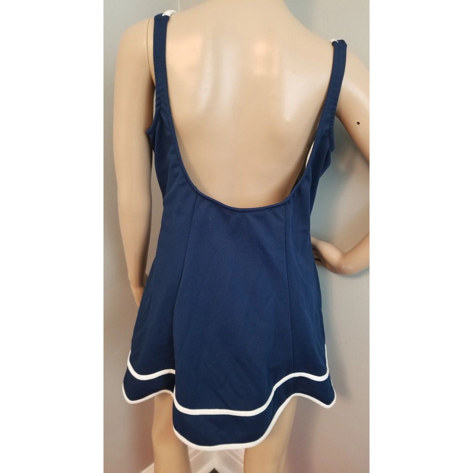 70s Vintage Robby Len Navy & White Swim Dress - XXL