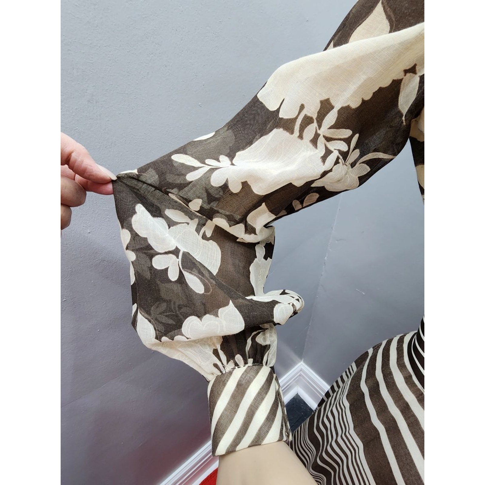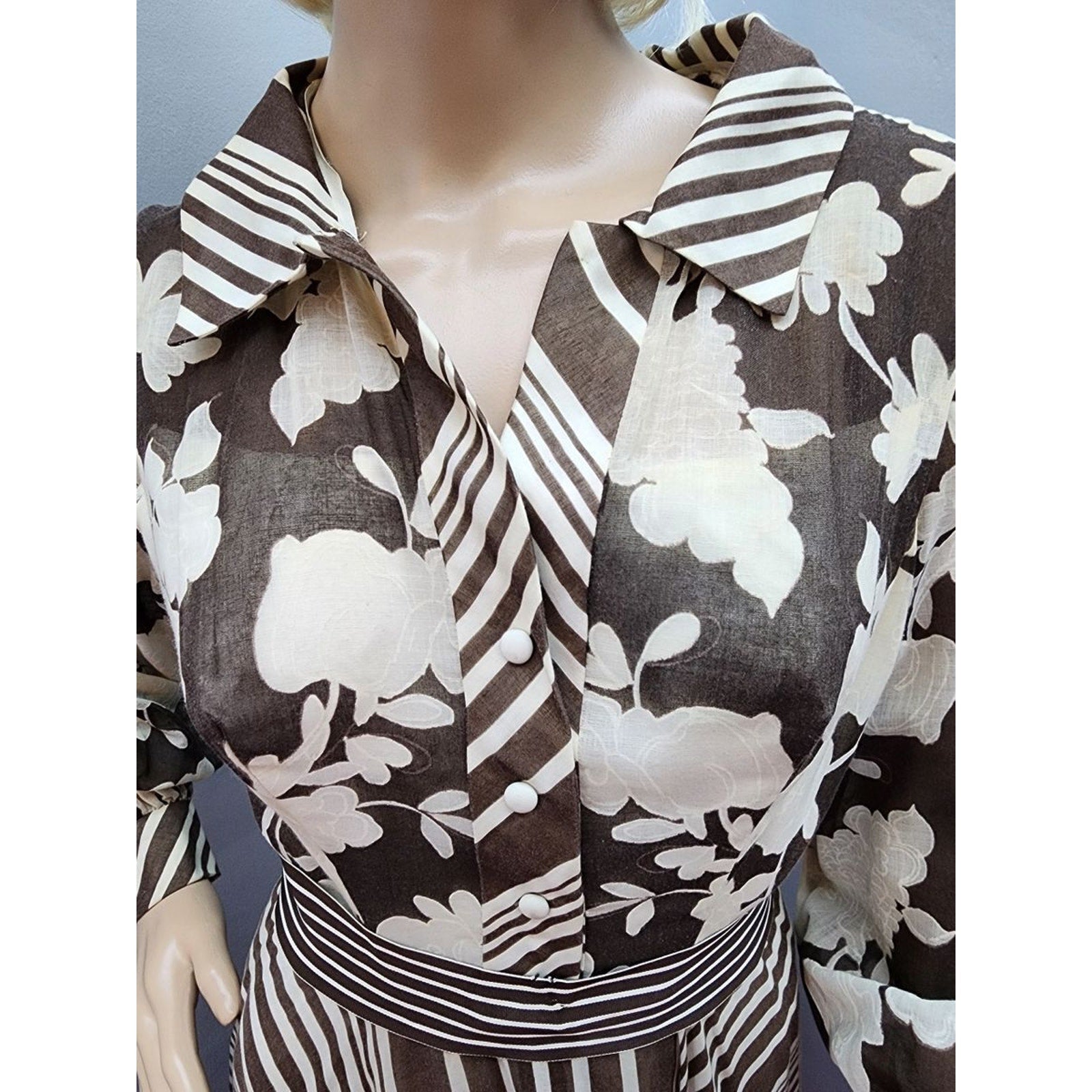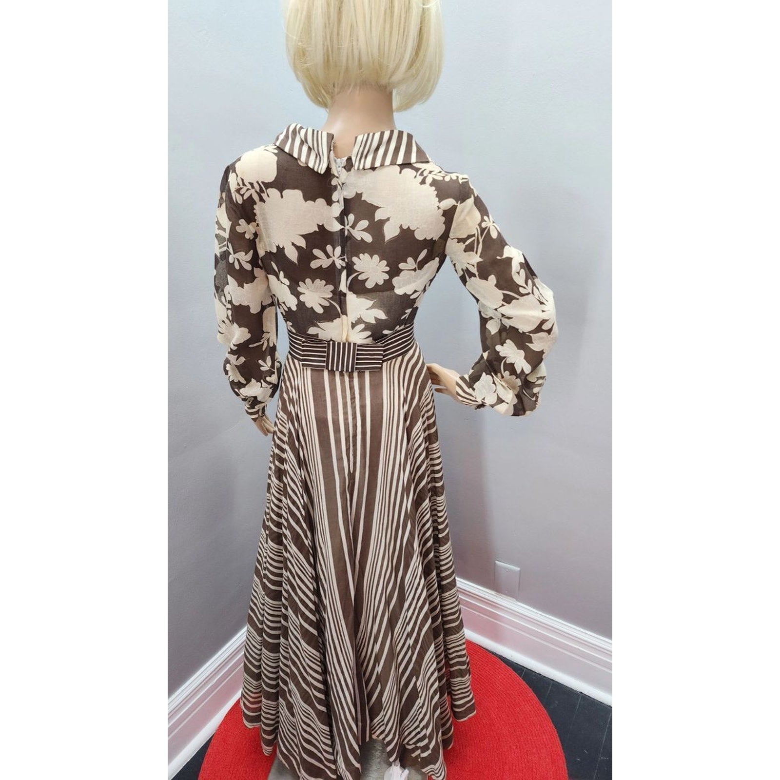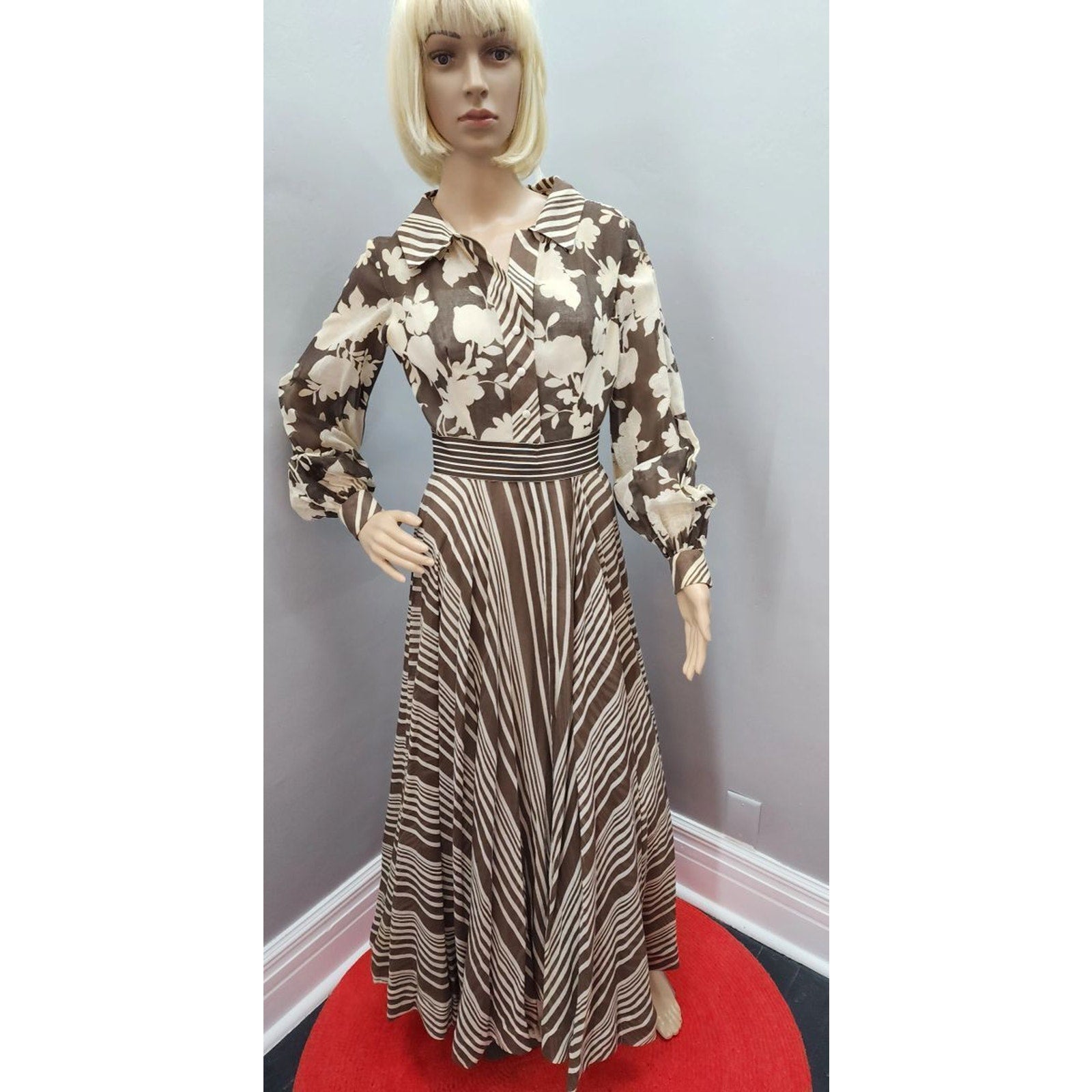 70s Vintage Super Maxi in Brown and Cream Organdy - XS