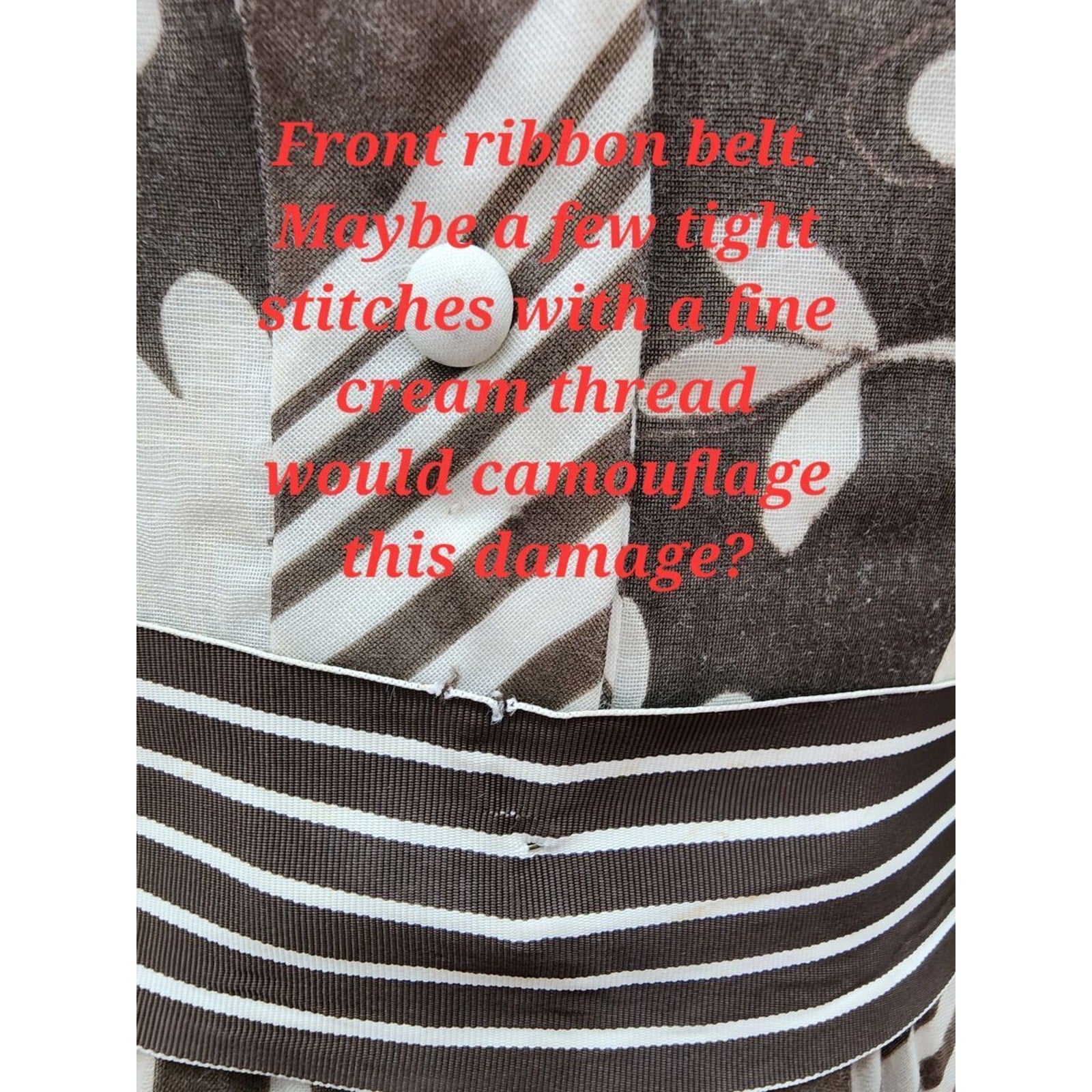 Condition : Good vintage condition. There are a few stained areas, but I truly believe they will remove easily with a dry cleaning. There are a few loose threads and the back bow closure could use some refining.