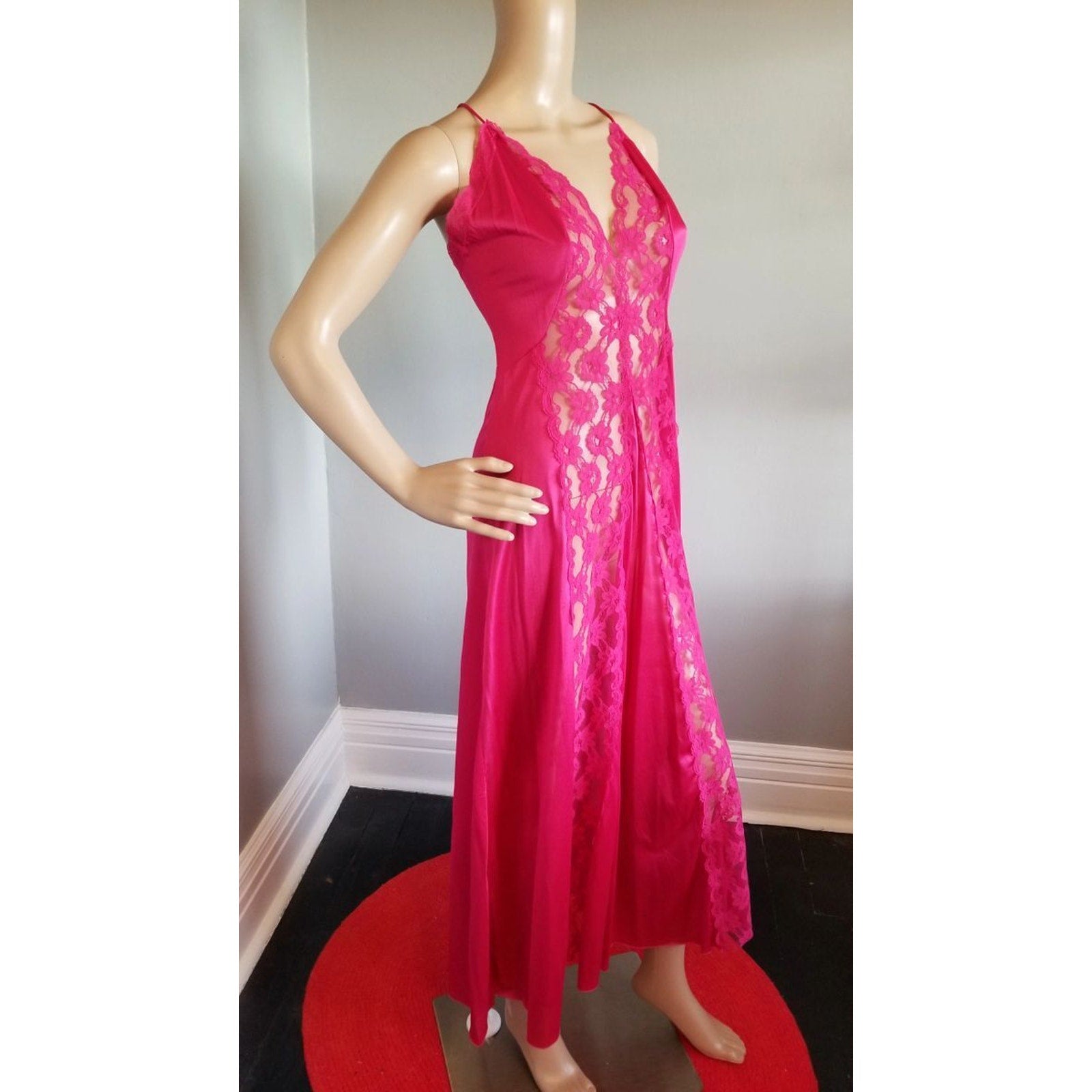 70s Vintage Val Mode Deep Raspberry Nylon Nightgown - M
