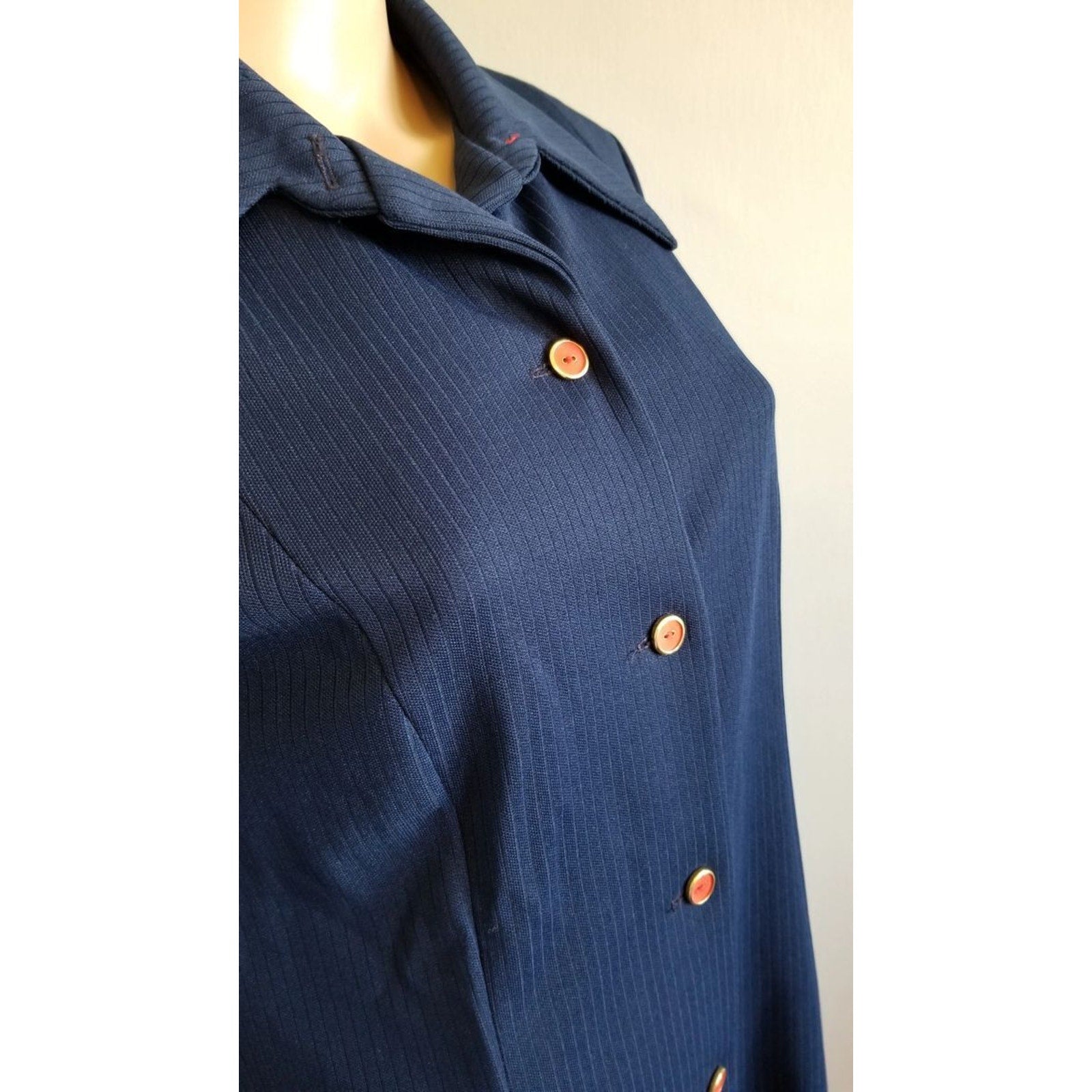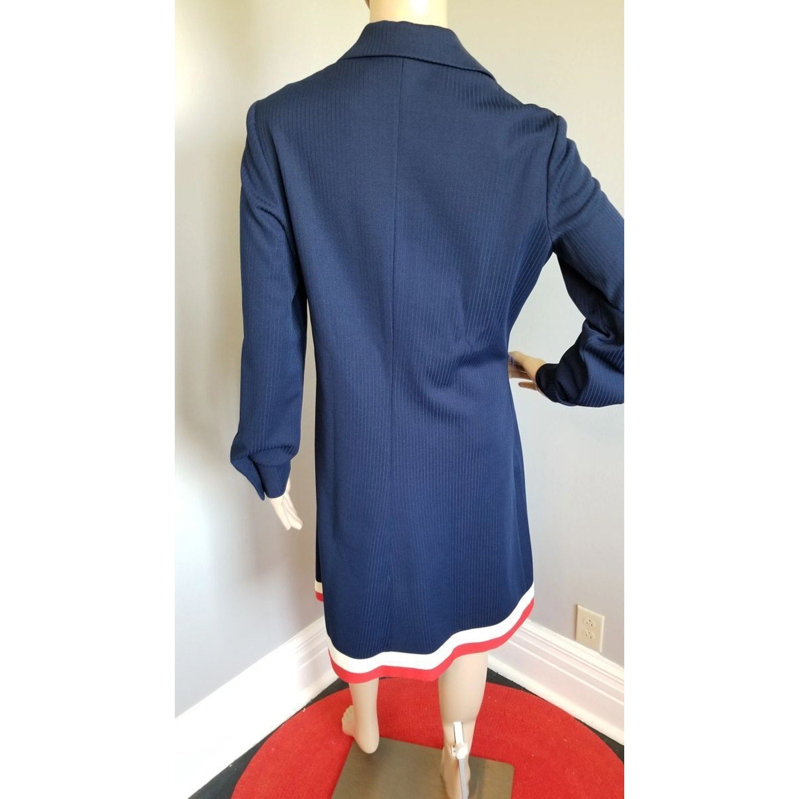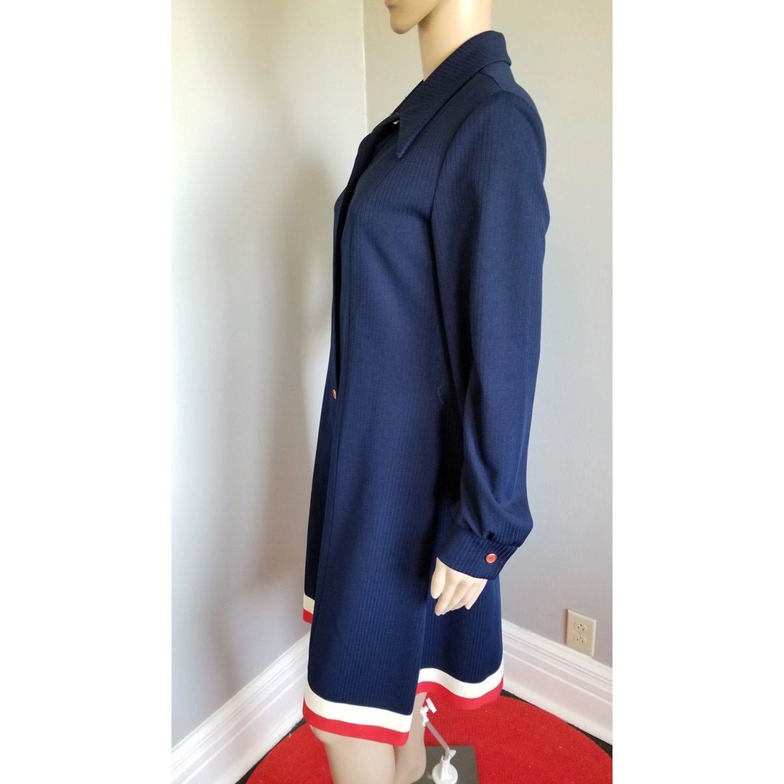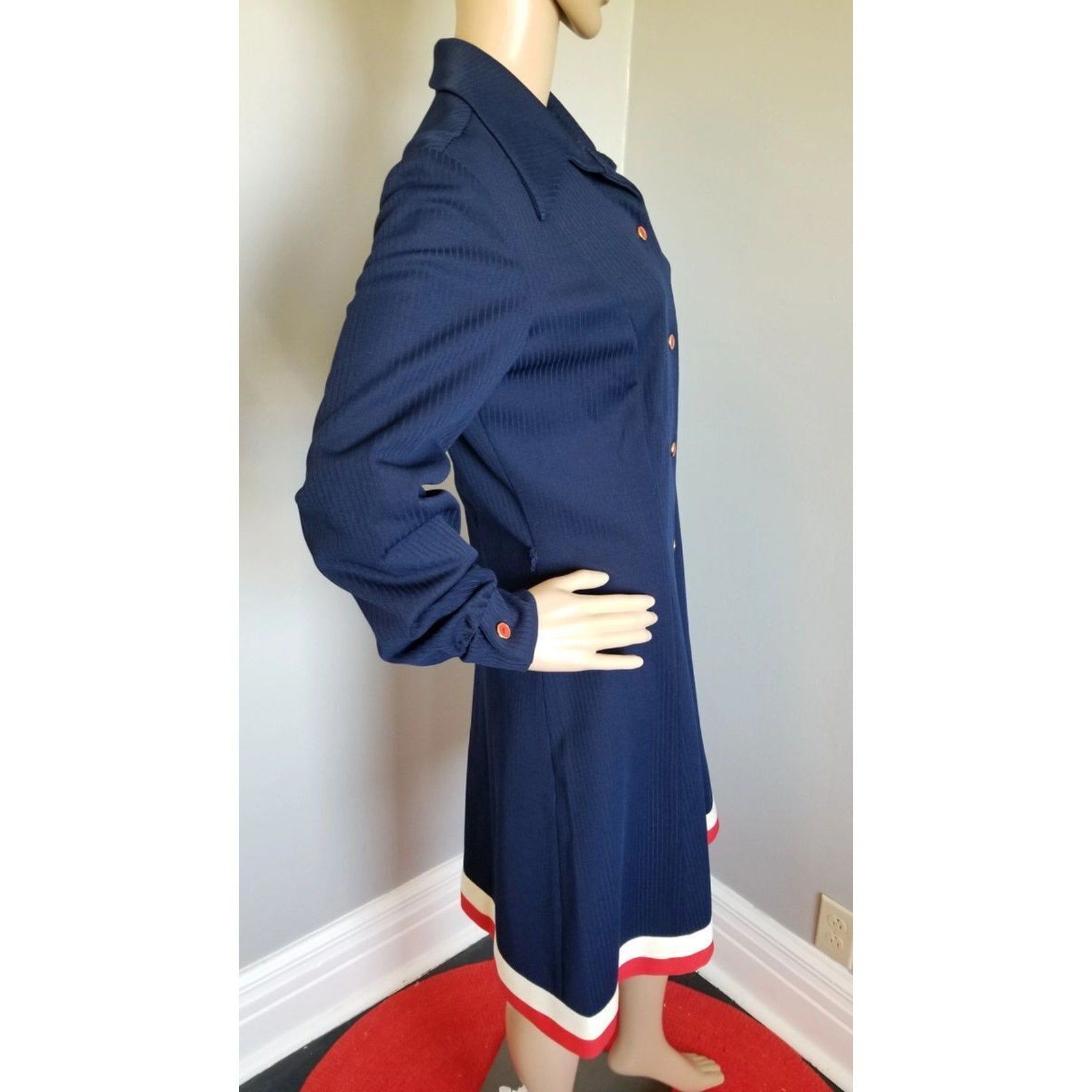 70s Vintage Verona Knits Navy A-Line Dress with Red & White Trim - L