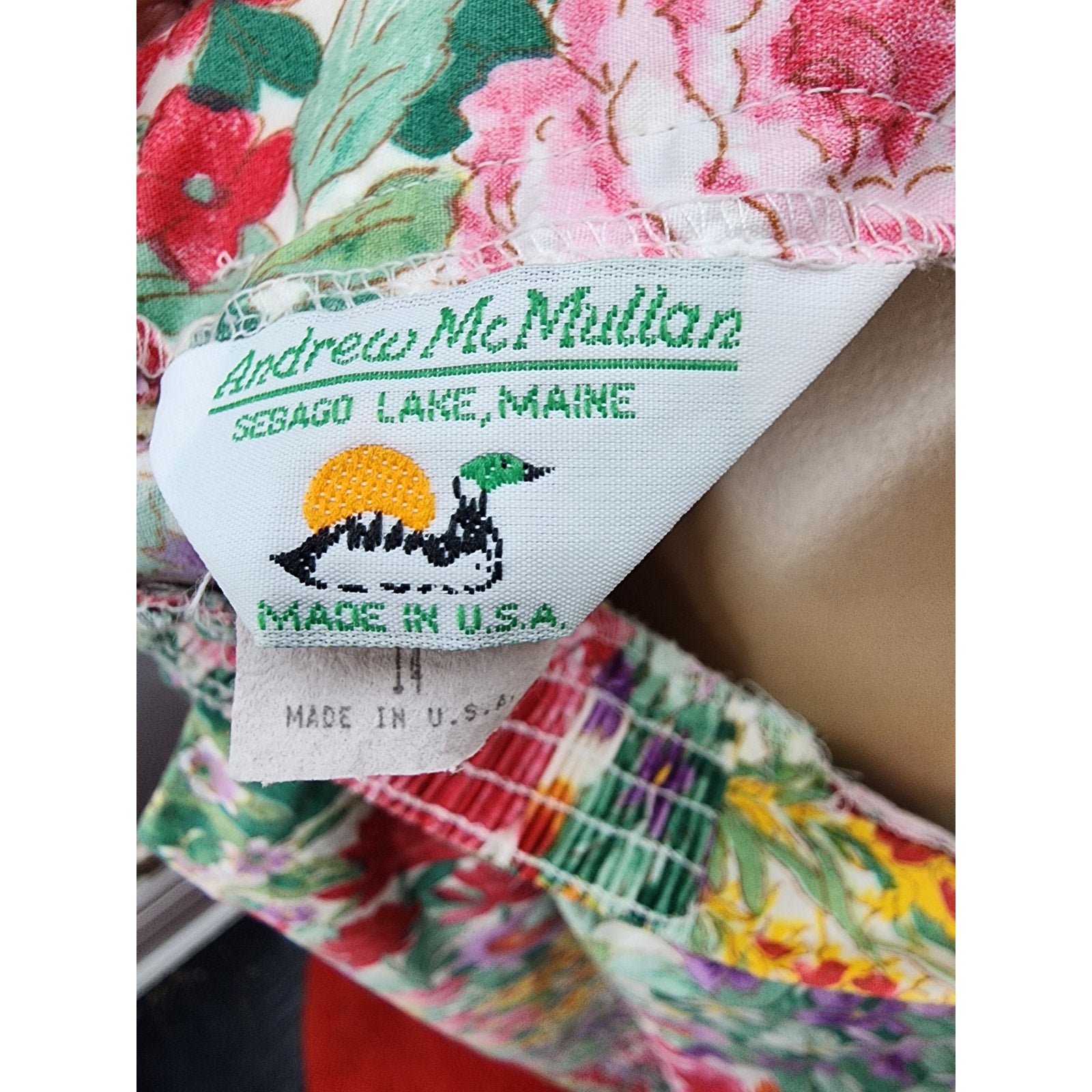 80s Andrew McMullan Floral Skirt, Pockets, Elastic Waist - L