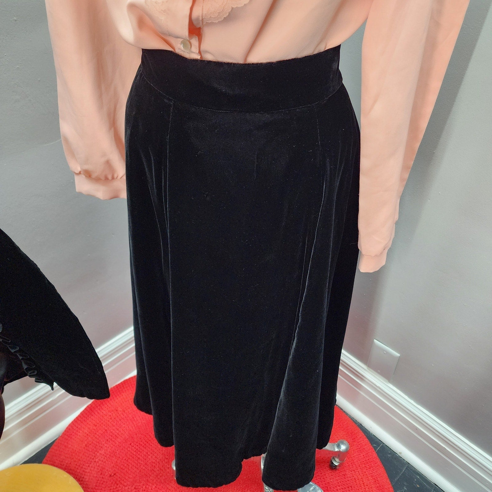 80s Vintage 3 Piece Black Velvet Skirt Suit, stage outfit? Read - L