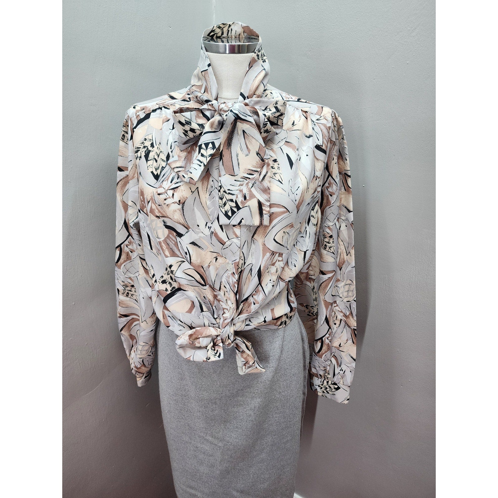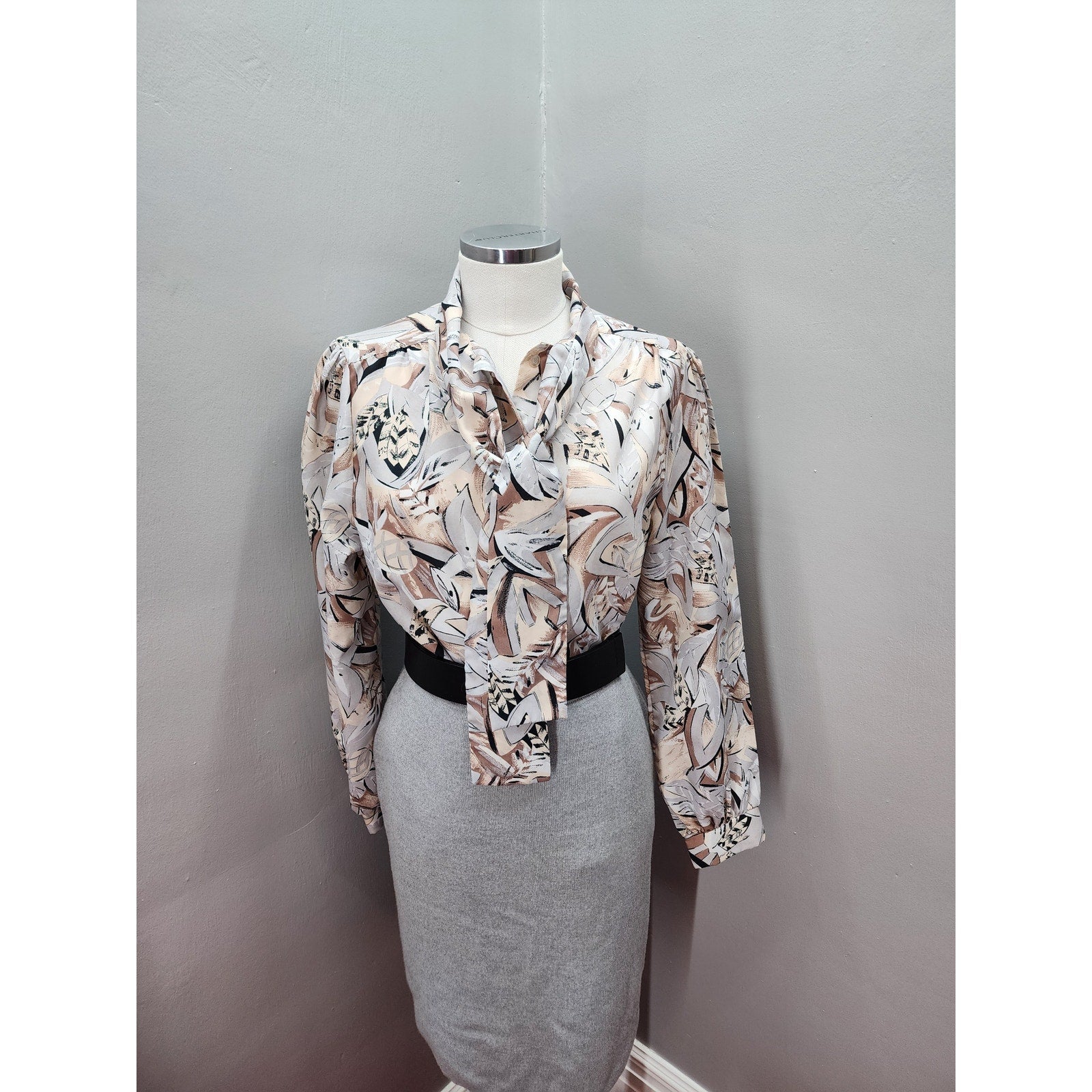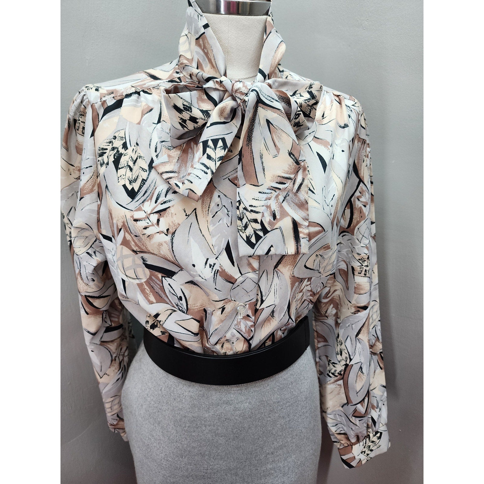 80s Vintage Alfred Dunner Abstract Design with Pussy Bow Blouse - M