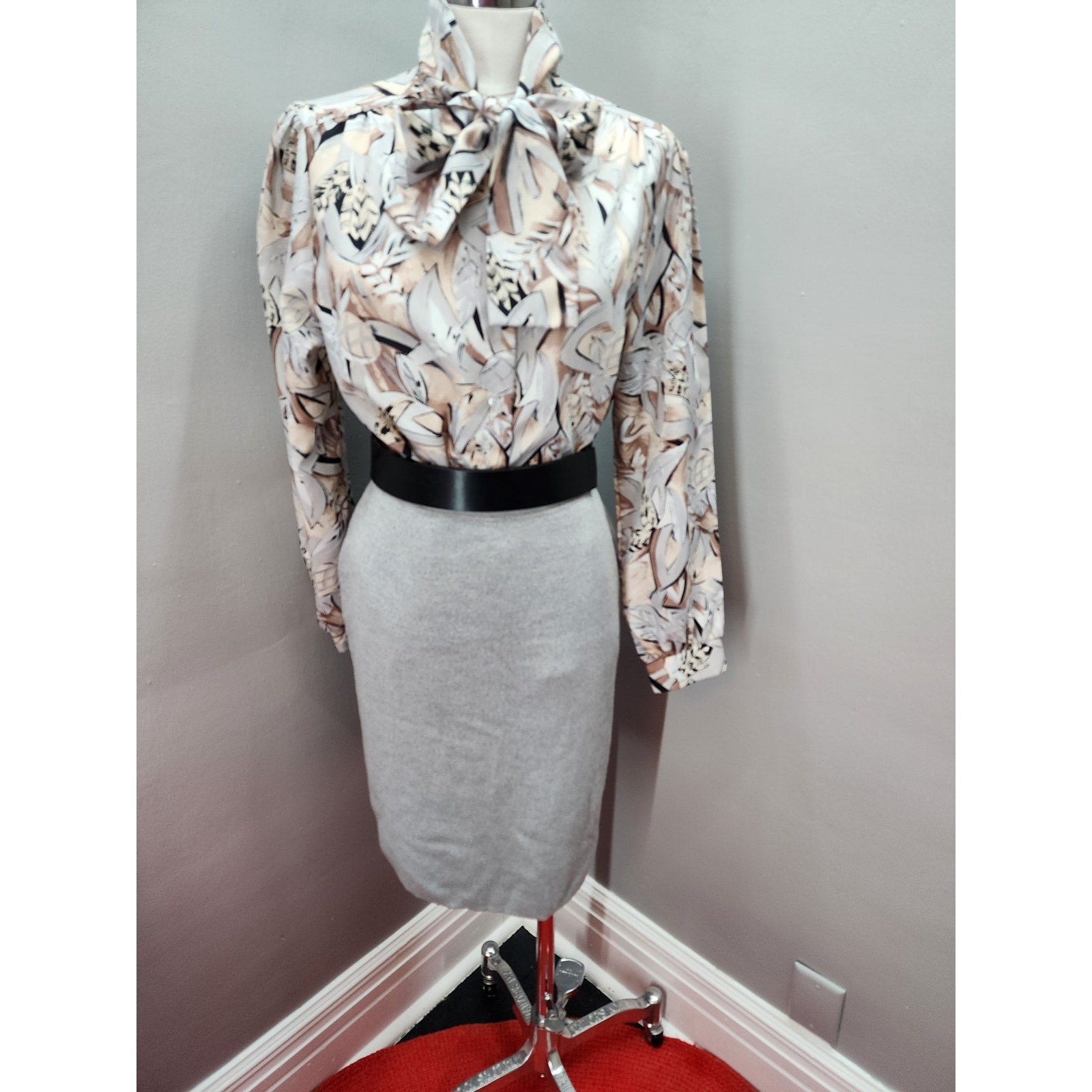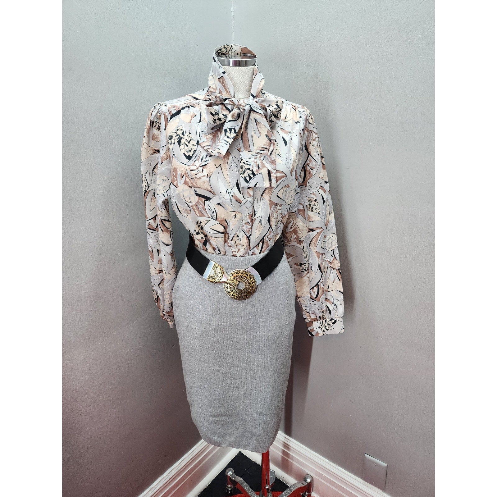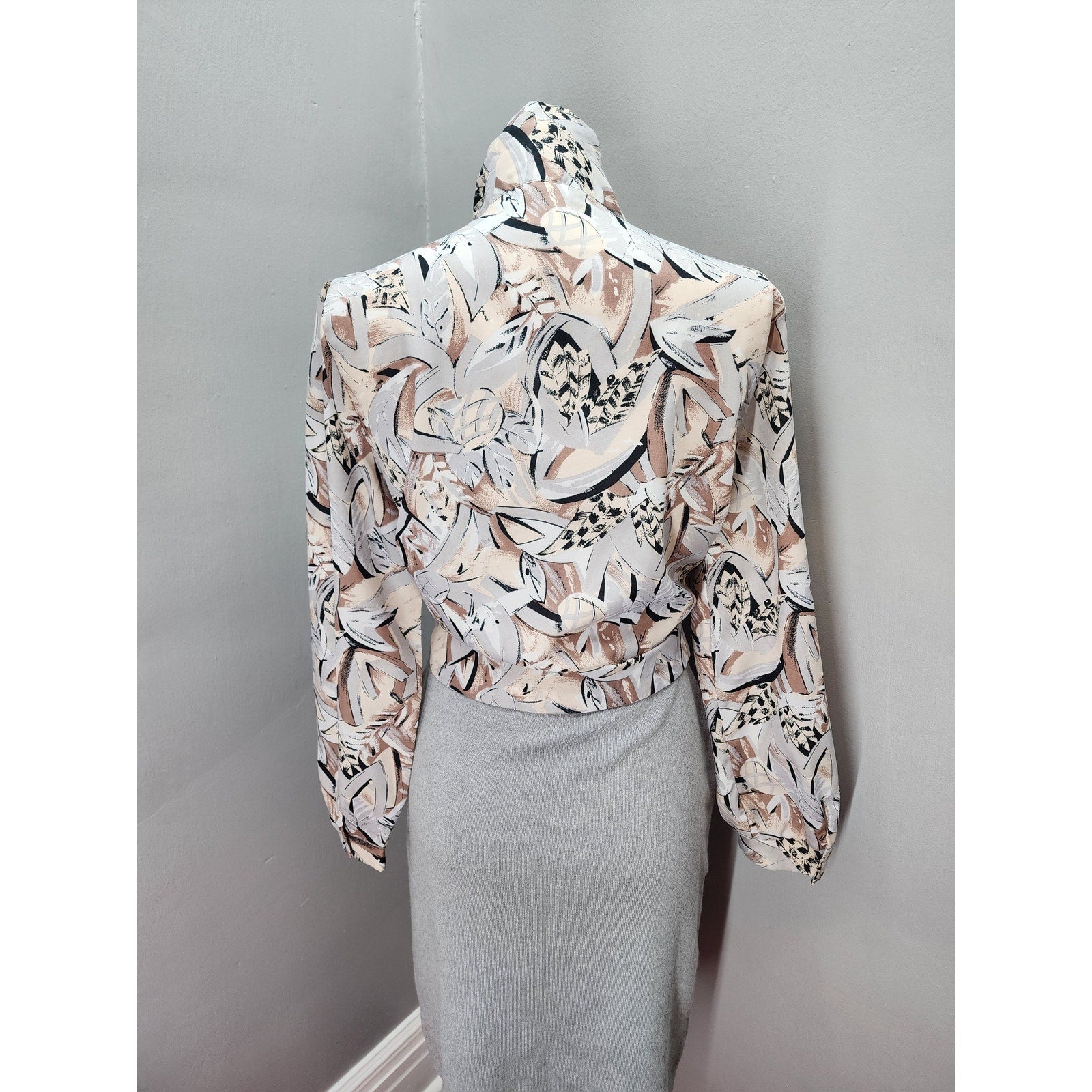 80s Vintage Alfred Dunner Abstract Design with Pussy Bow Blouse - M