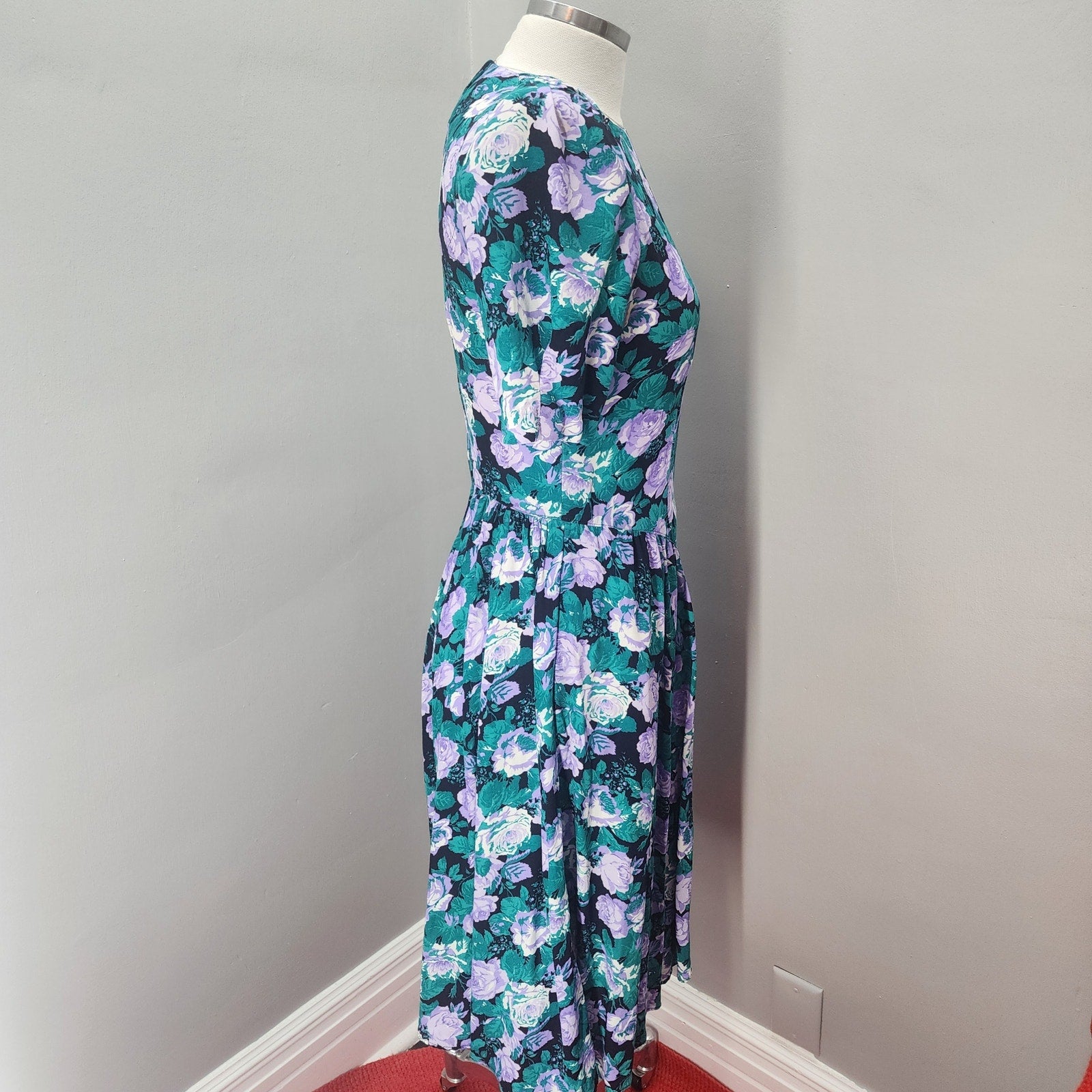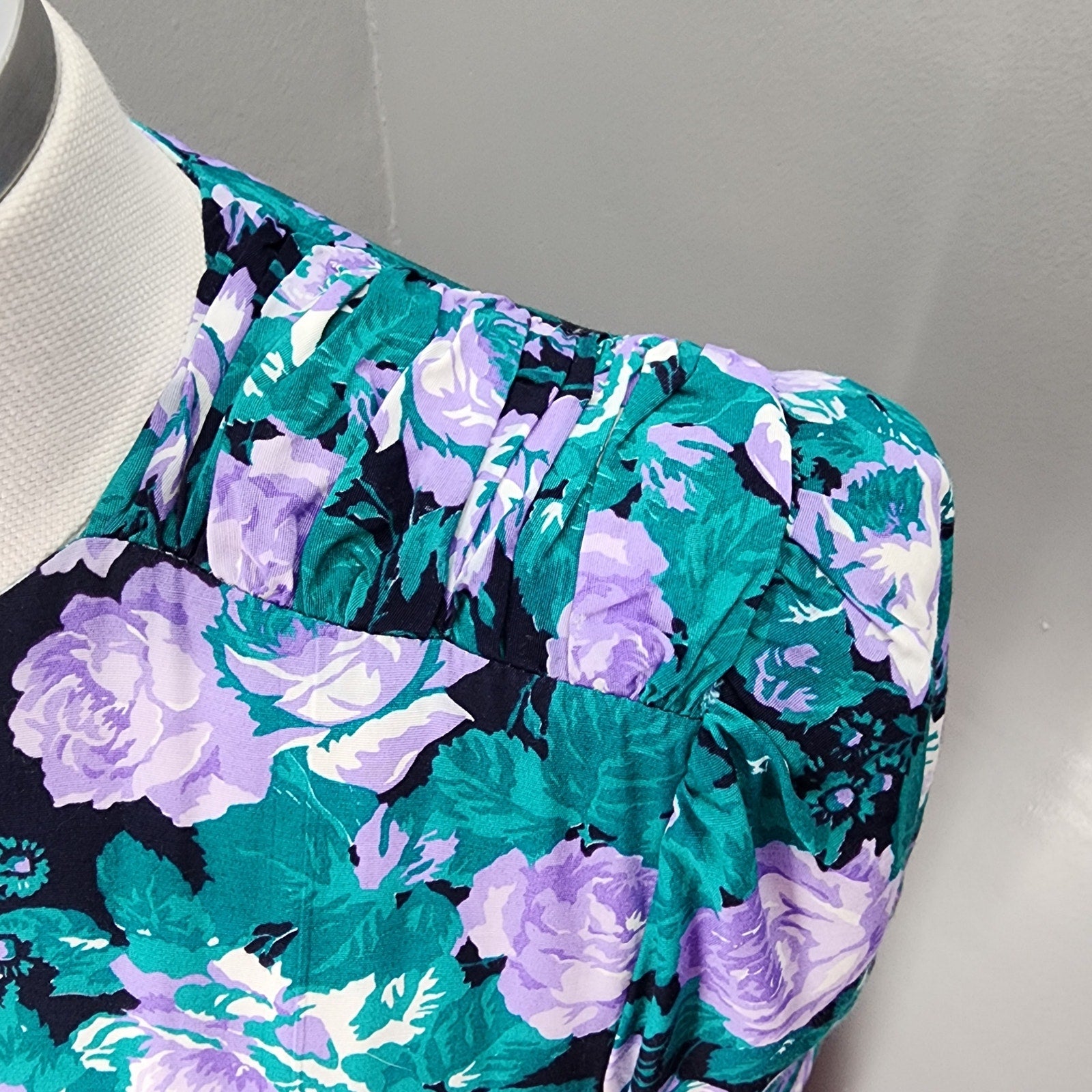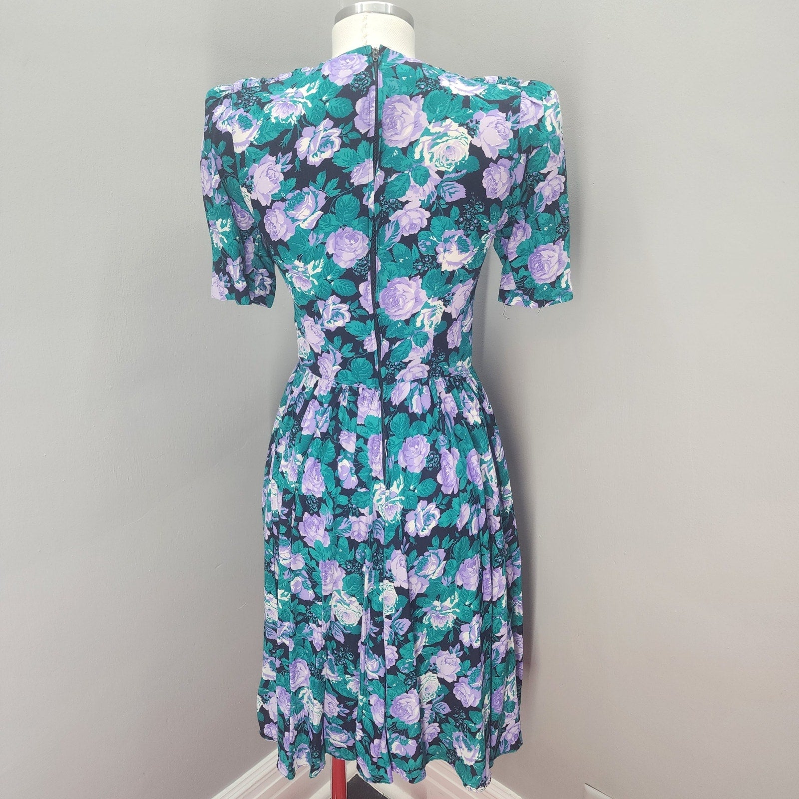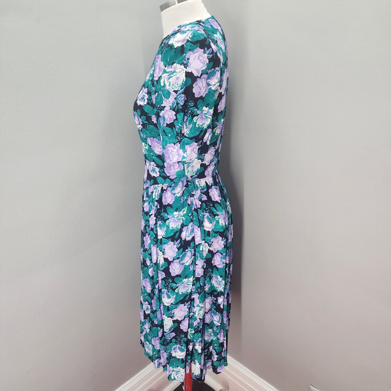 80s Vintage E.D. Michaels Floral Fit-n-Flare Dress - S
