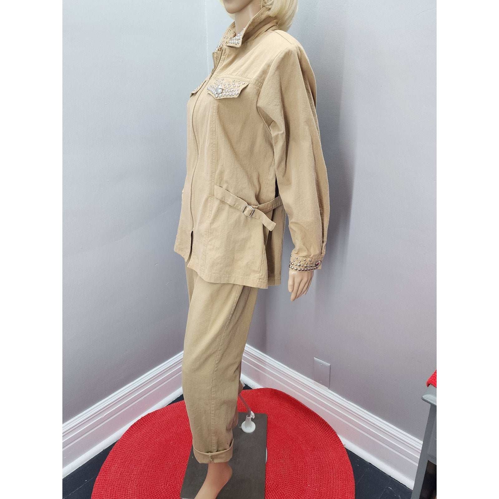80s Vintage Gepetto Casual Safari Suit, Tan - S / M