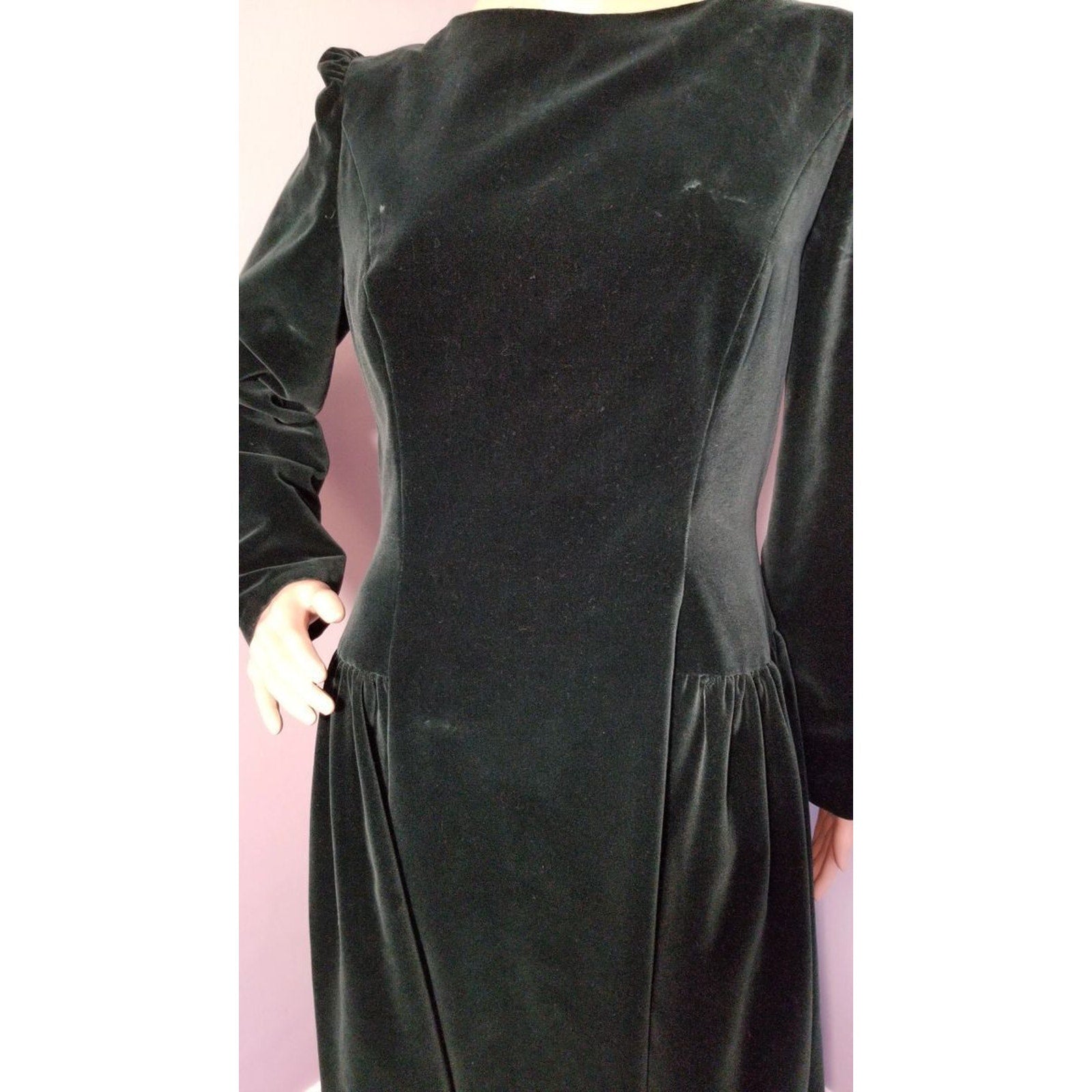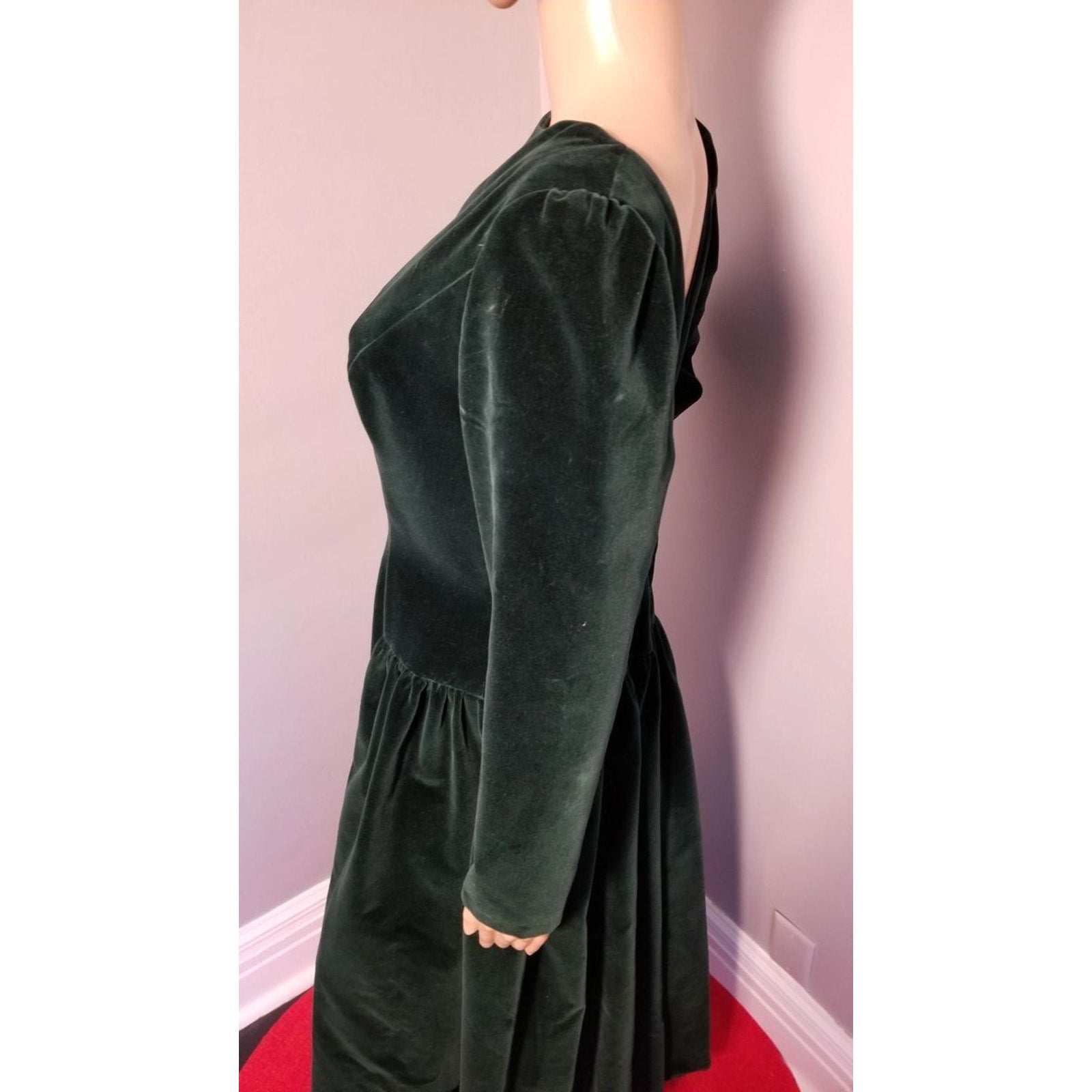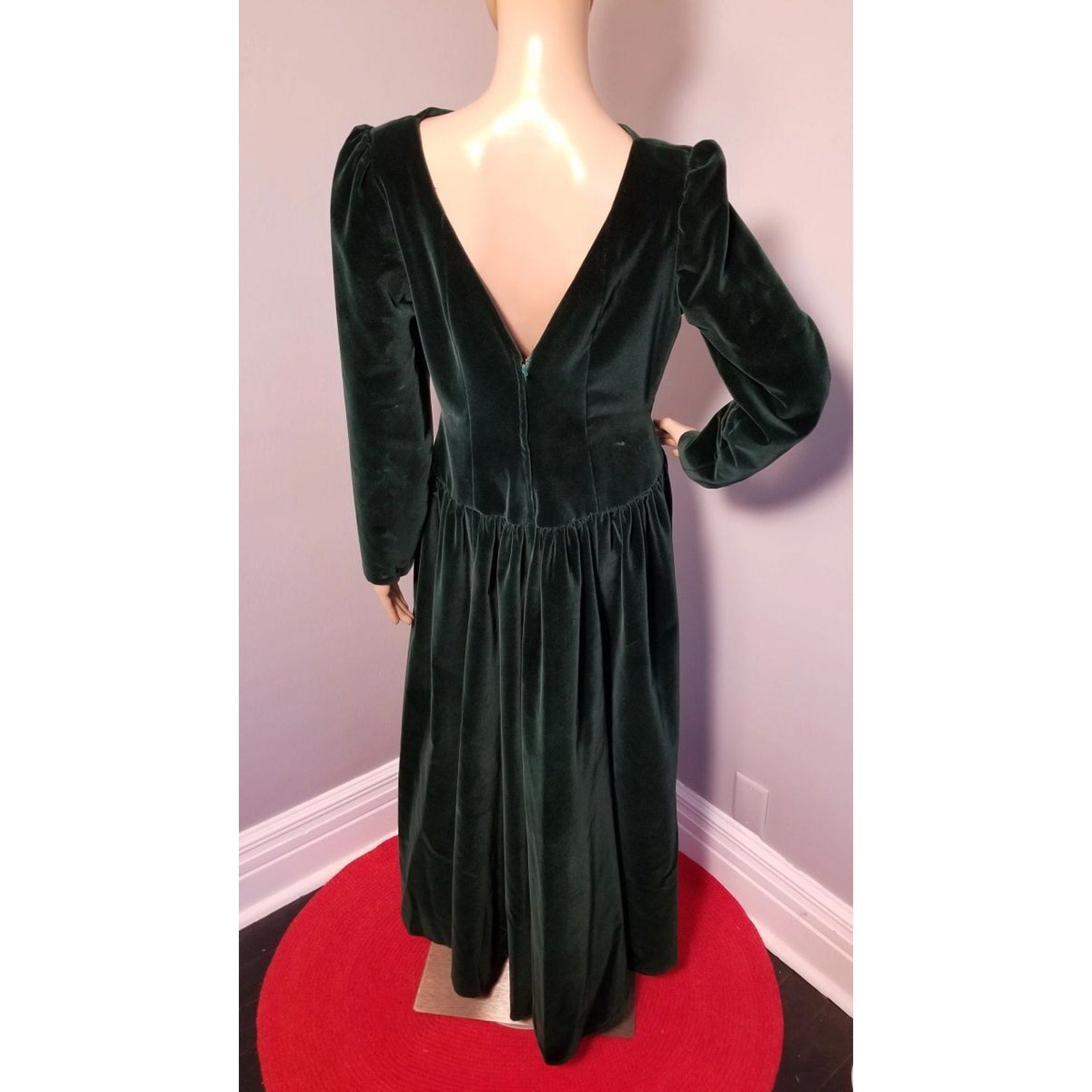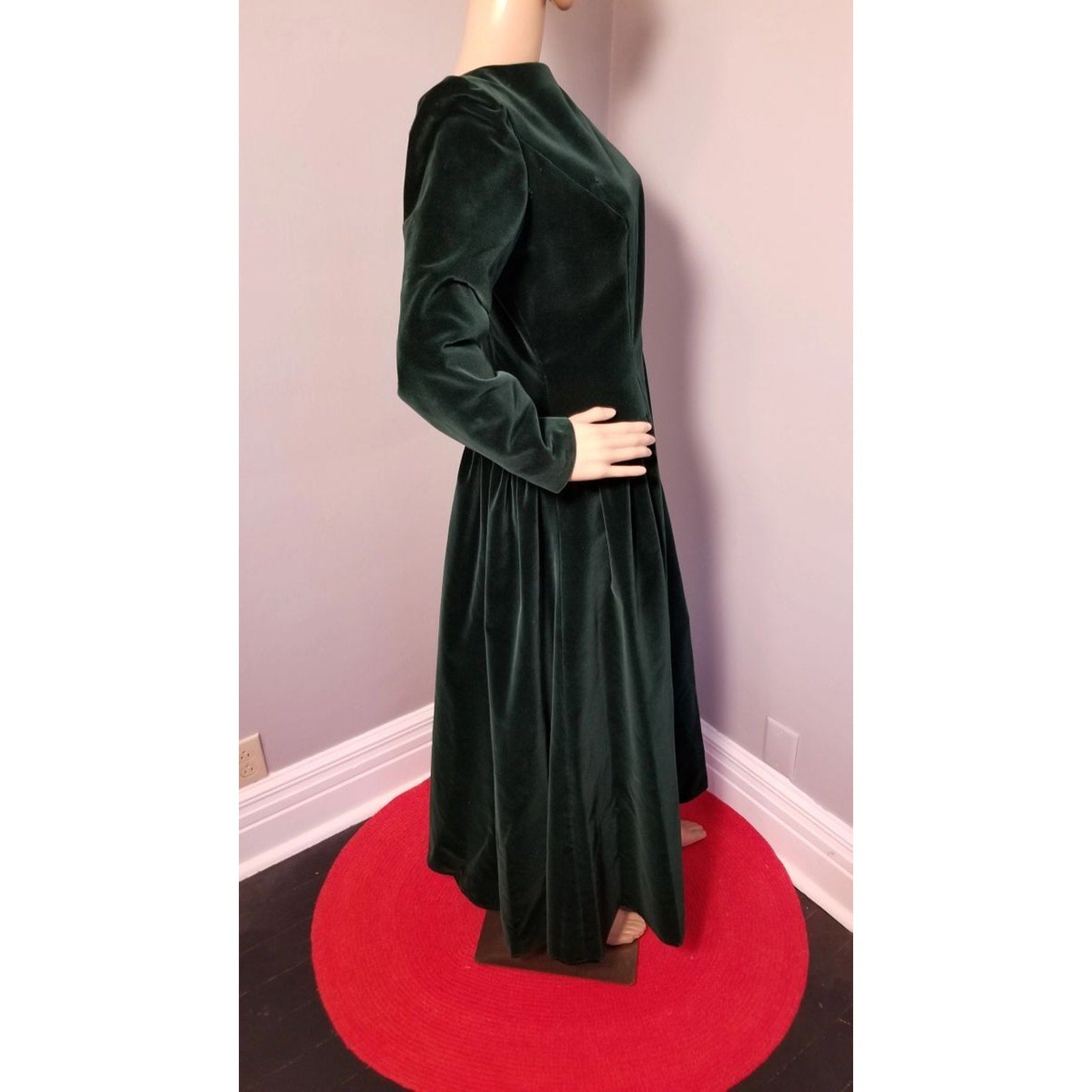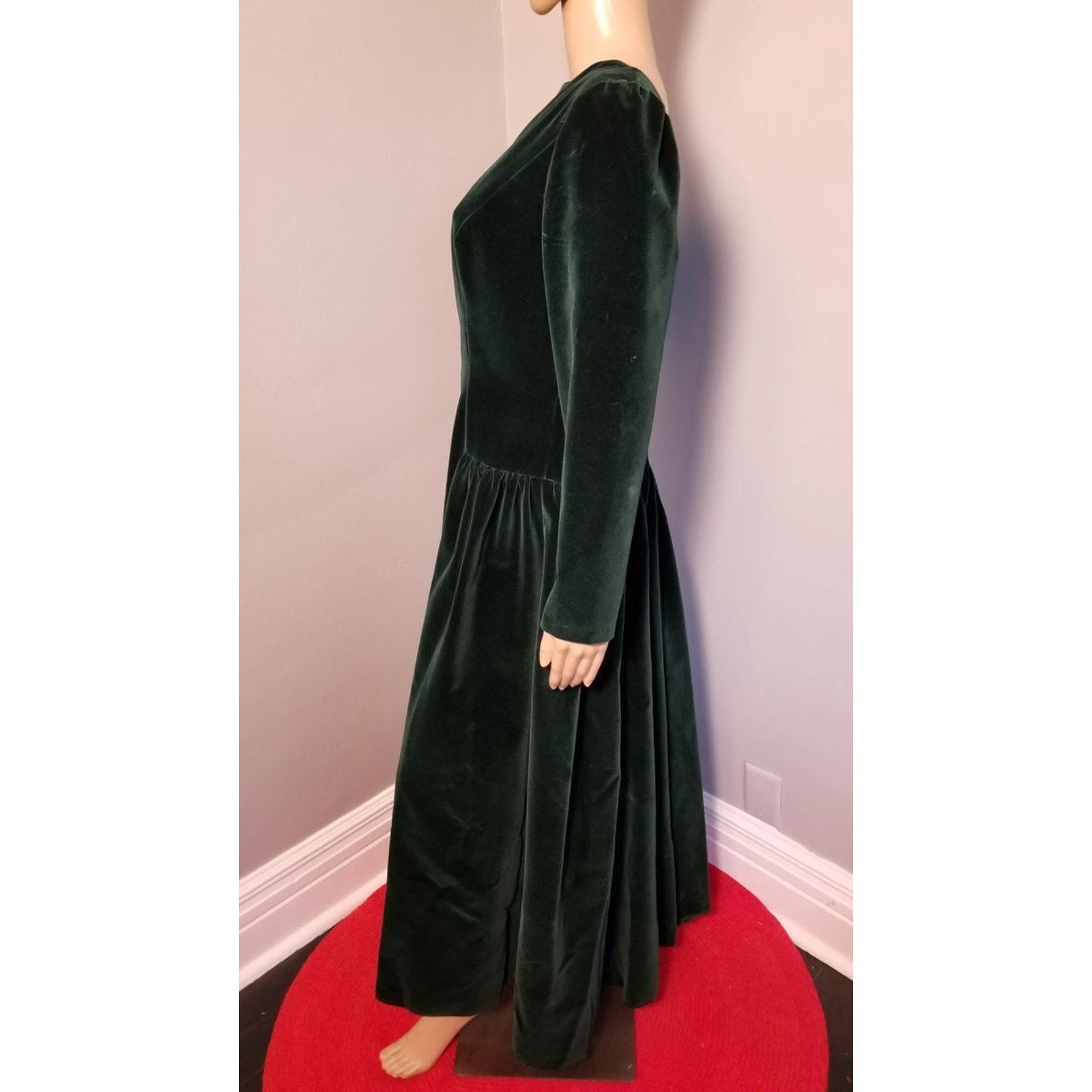 80s Vintage House of Bianchi Deep Hunter Green Velvet Maxi Dress - M/L