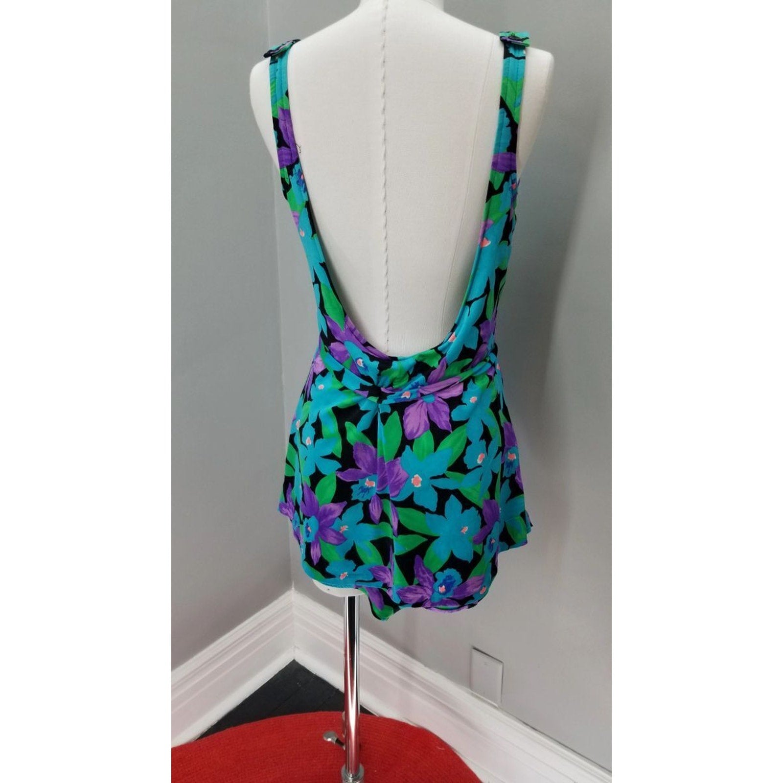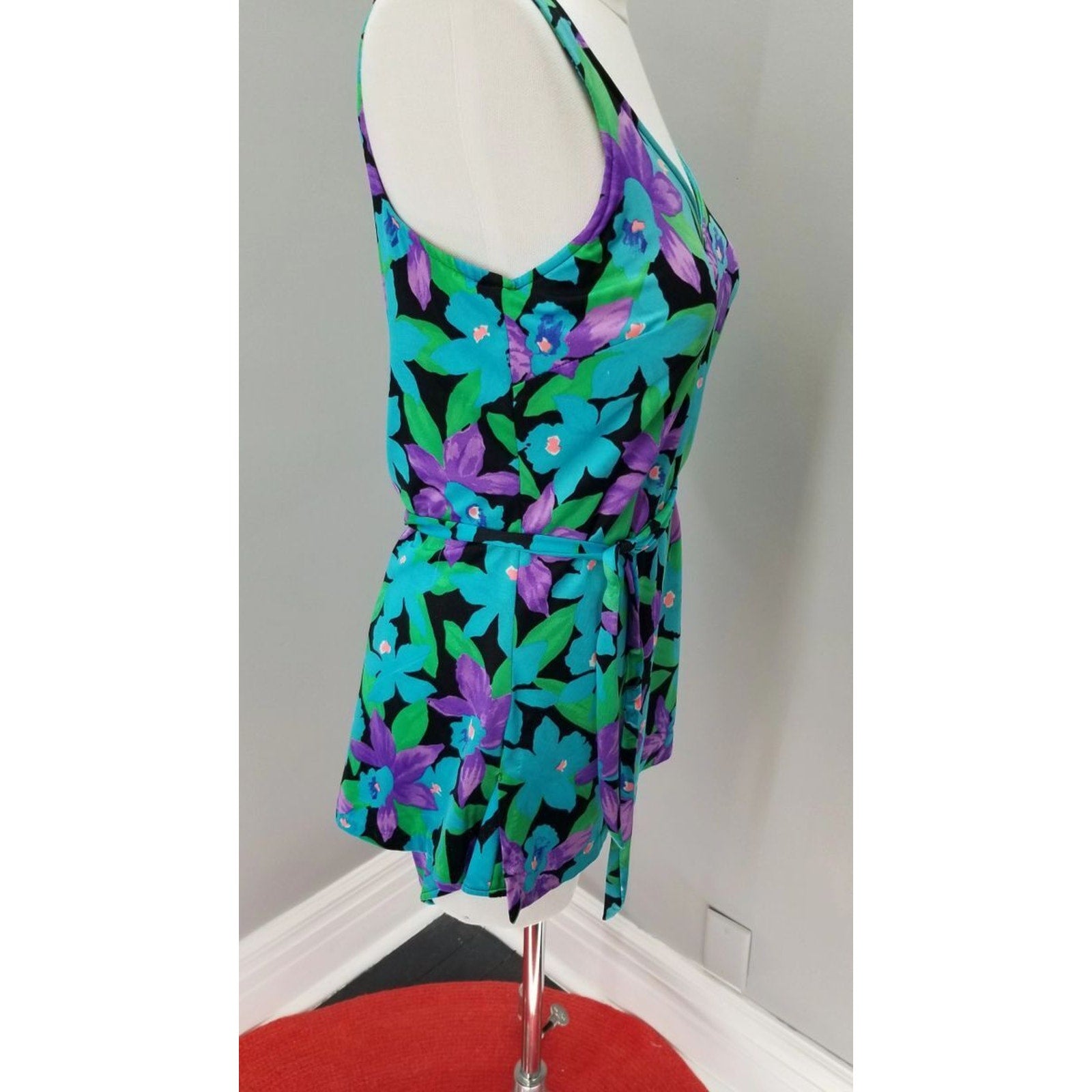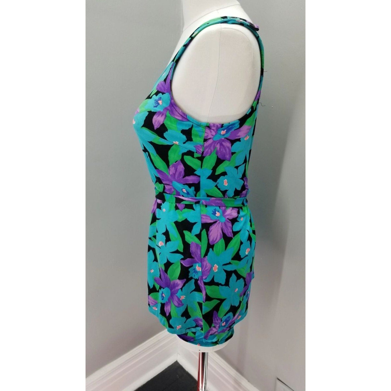 80s Vintage Maxine of Hollywood Belted Floral Swim Dress Swimsuit - L