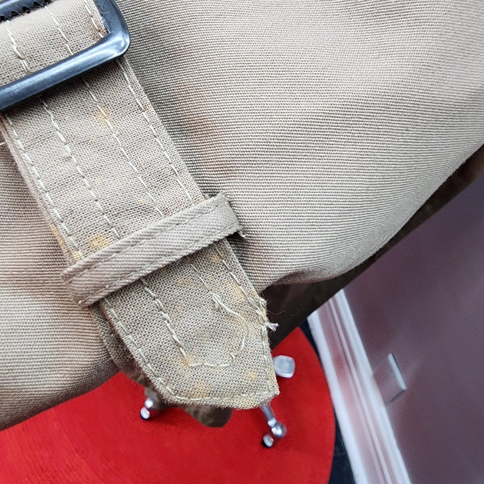 Condition: Overall good used vintage condition. Th right arm cuff belt has some lighter spots on it. Seems strange, as there are no other spots on or around the cuff belt, as pictured. Left arm cuff has a loose thread, also pictured.