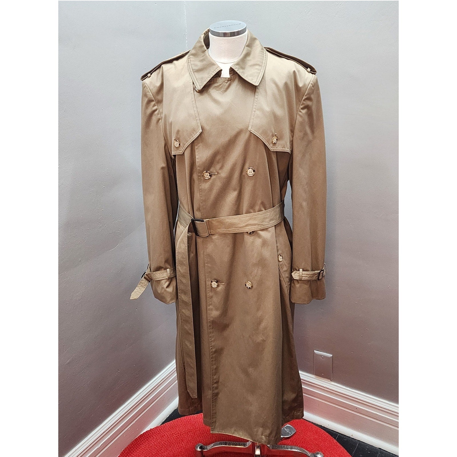 80s Vintage Men's Khaki Stafford All Weather Trench Coat - 44L