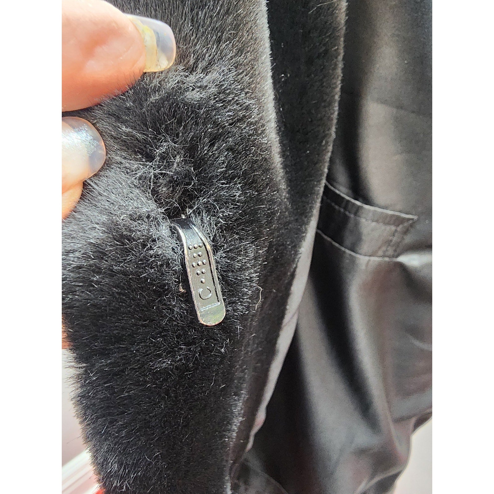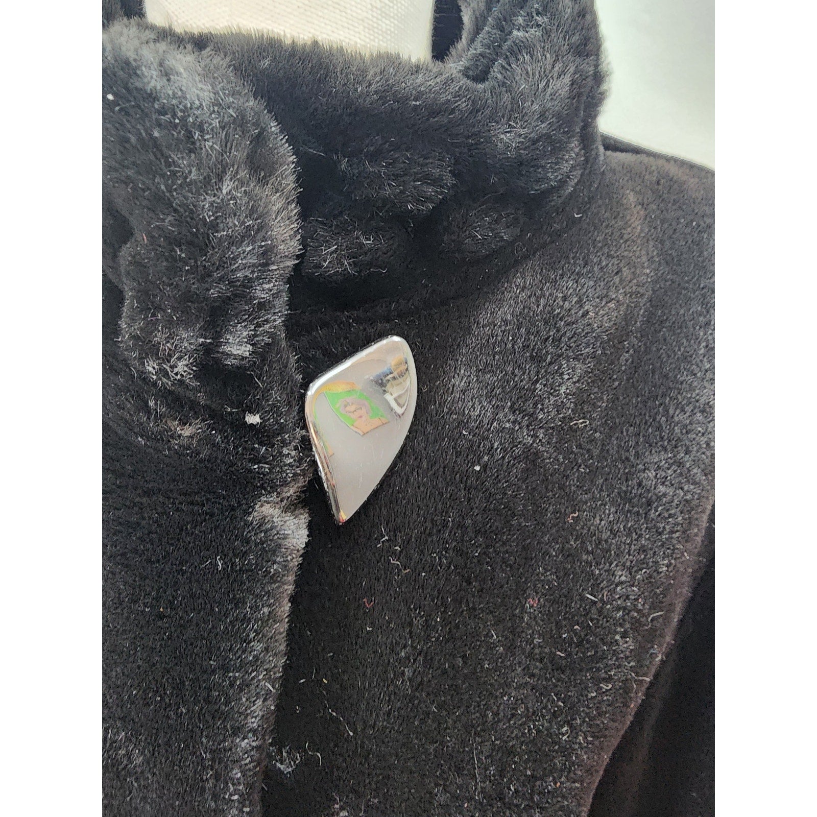 Has a super cute button closure at the neck, and furrier hook & eye down the front, (one needs repaired).