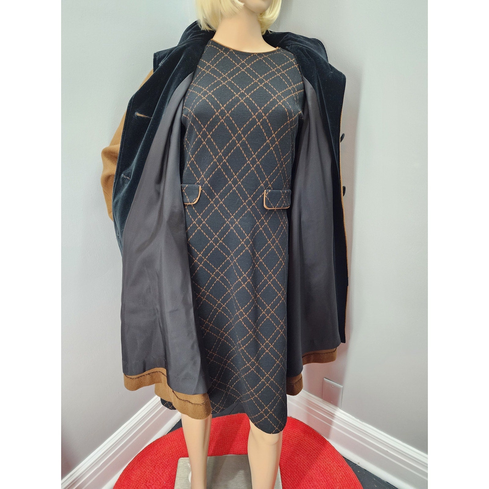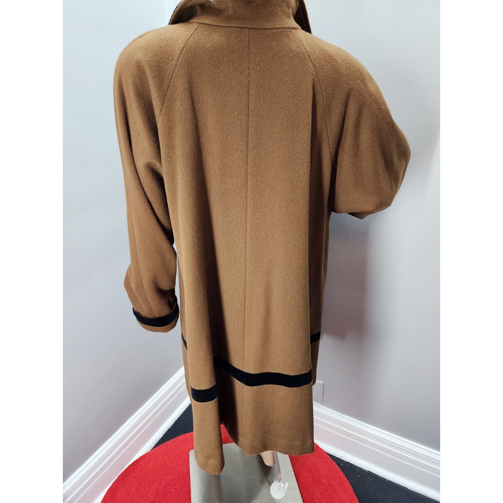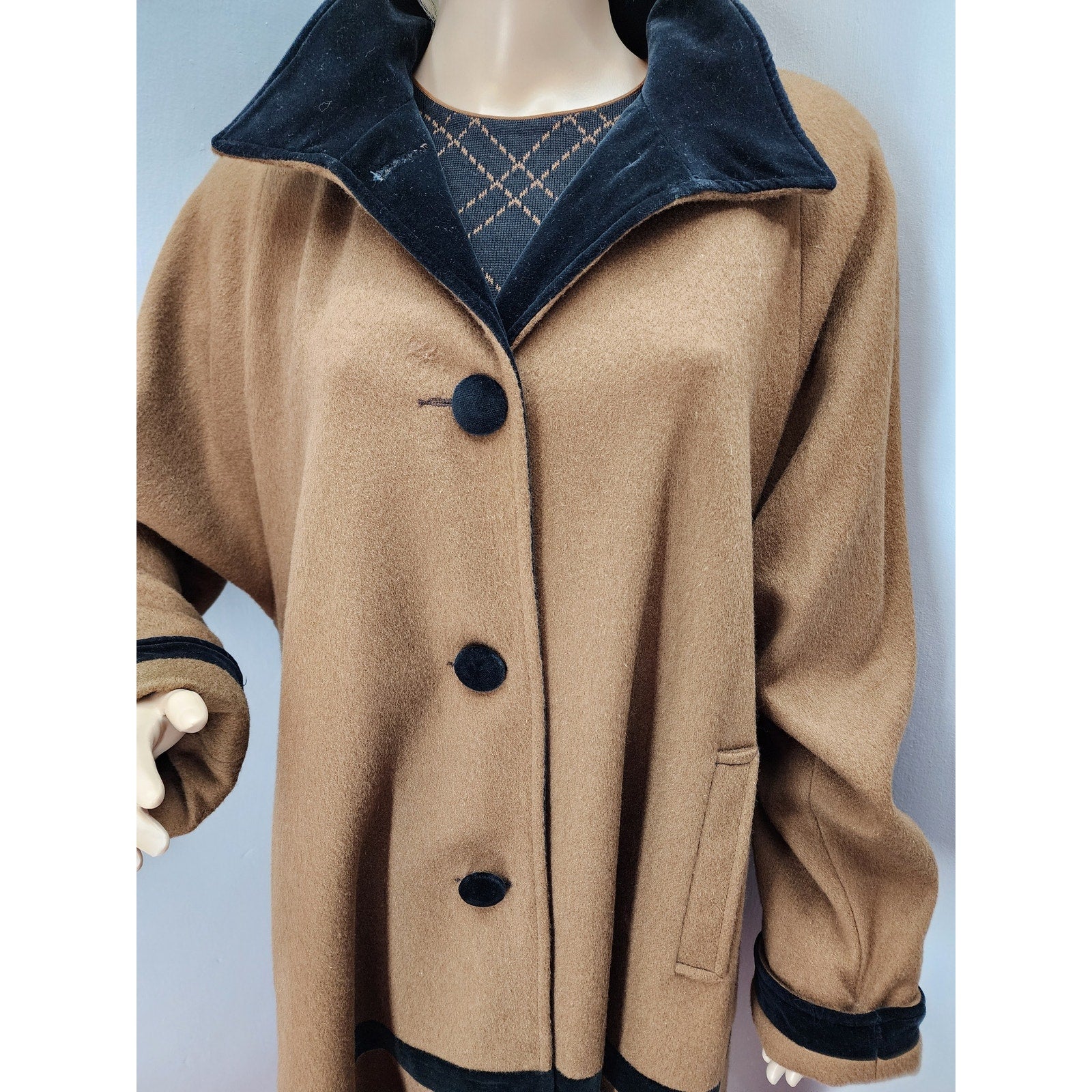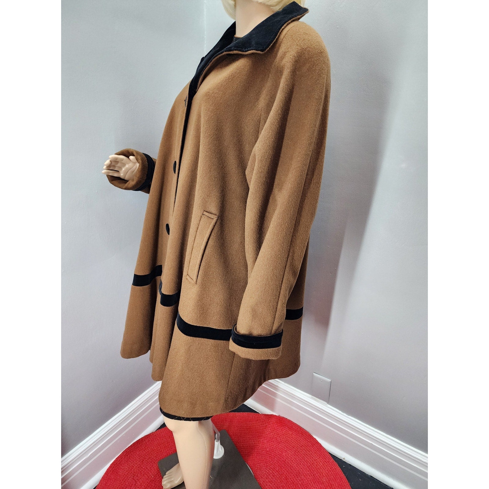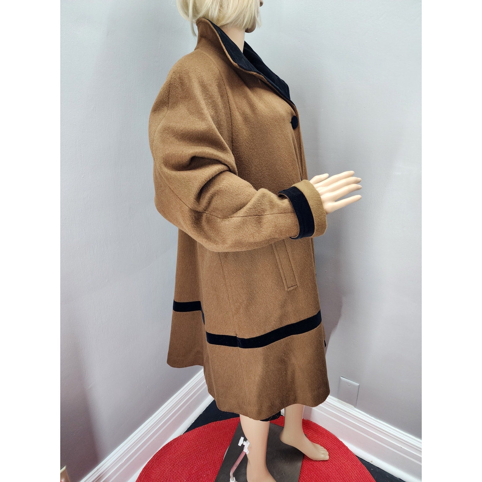80s Vintage Projections Wool Blend Swing Coat with Velvet Trim - L