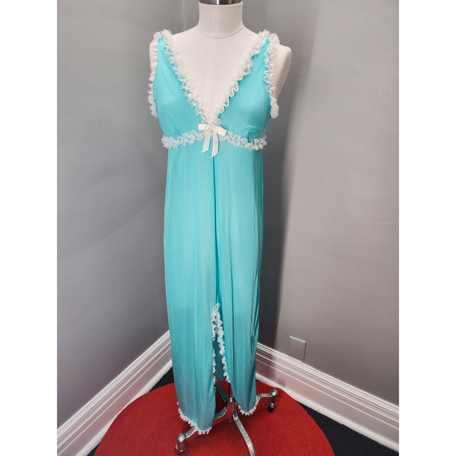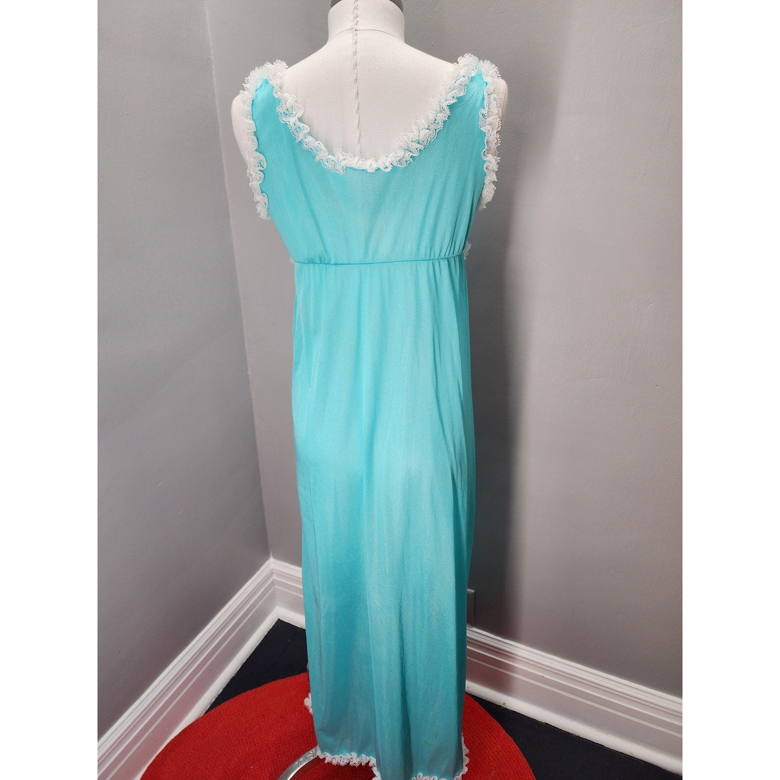 80s Vintage Robin Egg Blue Column Gown with Frilly Lace - S