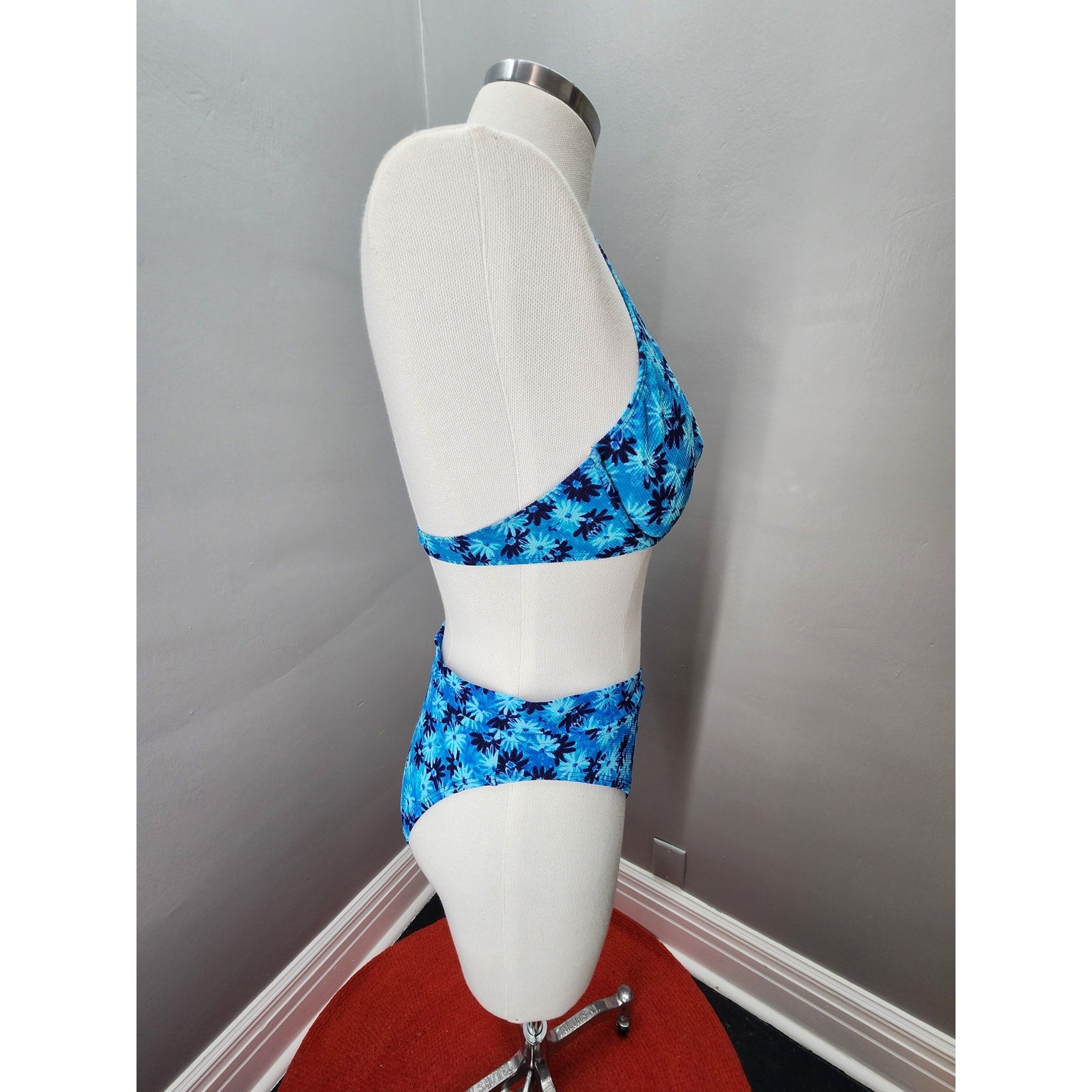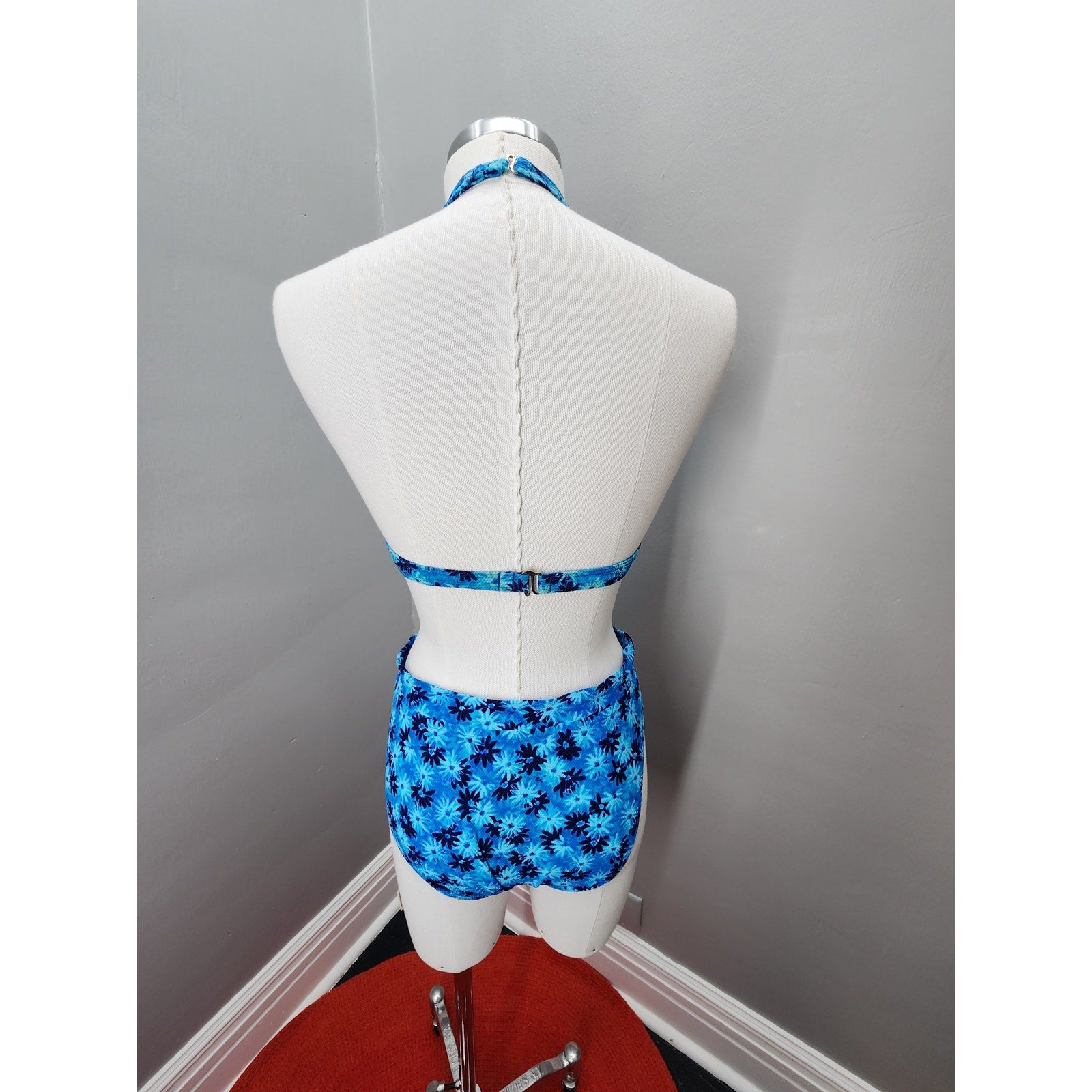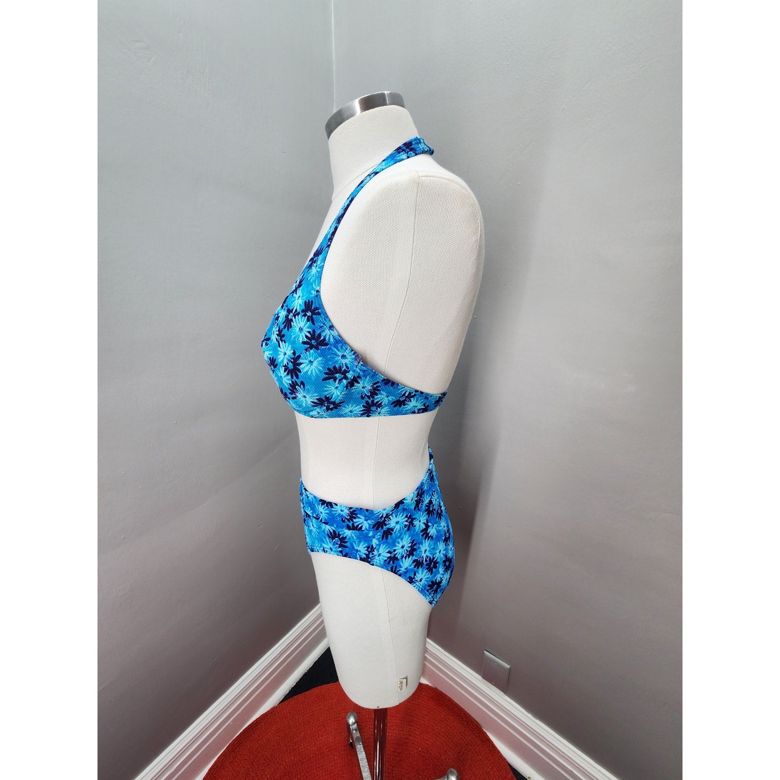 80s Vintage Swim Systems Bikini & Sarong, Blue Daisy - L