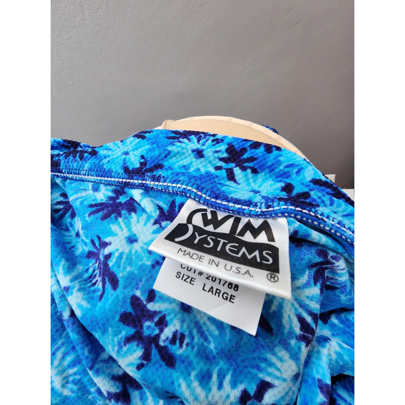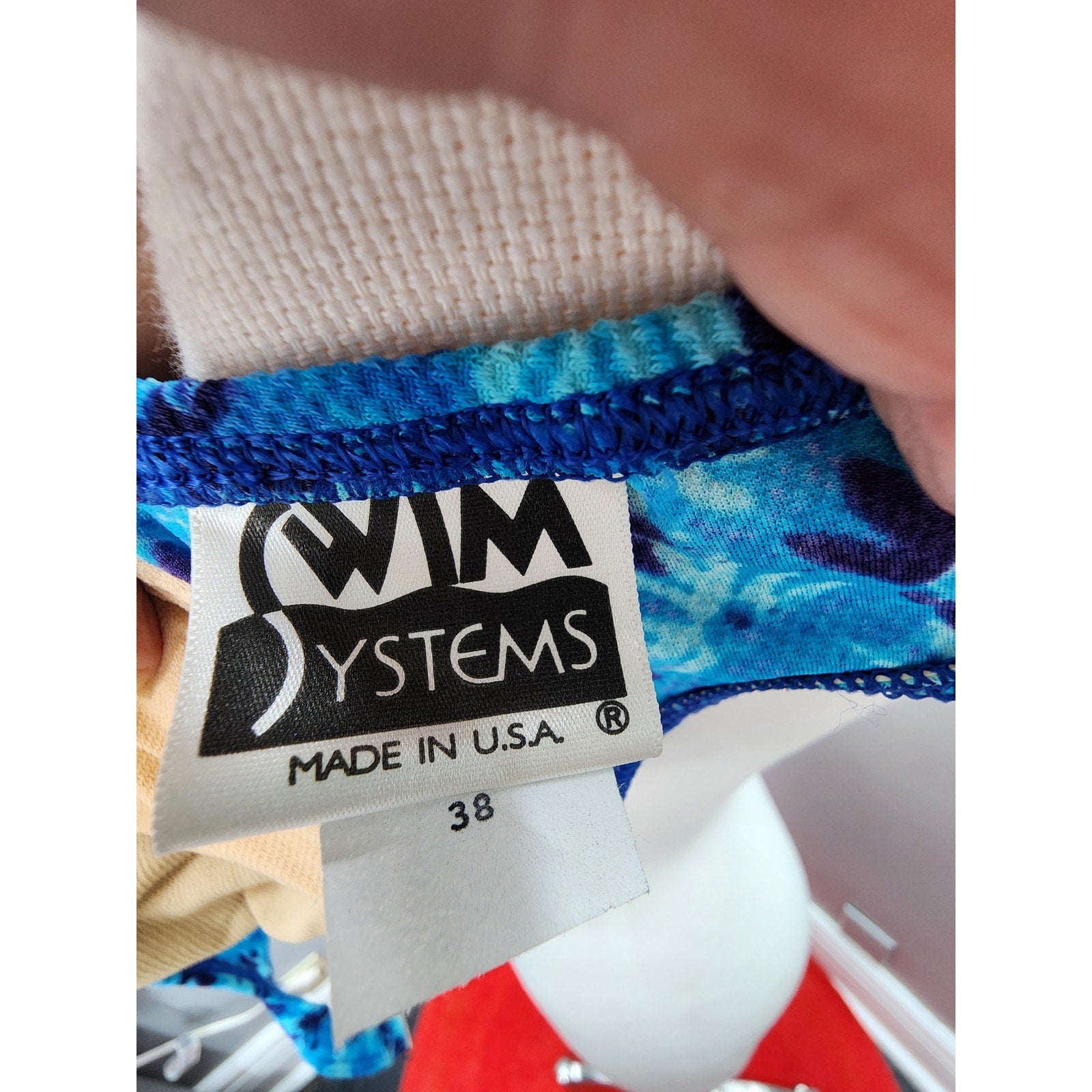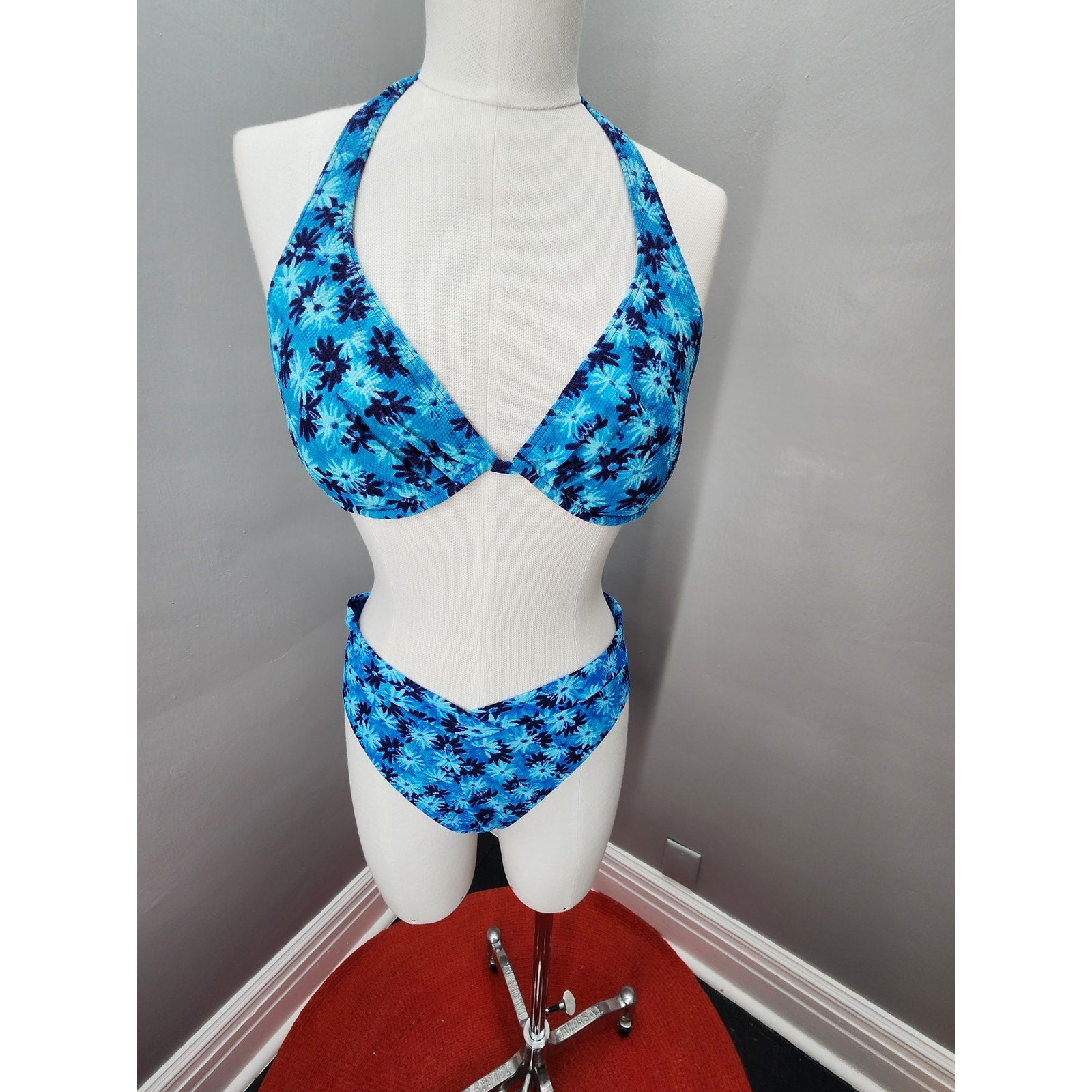 80s Vintage Swim Systems Bikini & Sarong, Blue Daisy - L