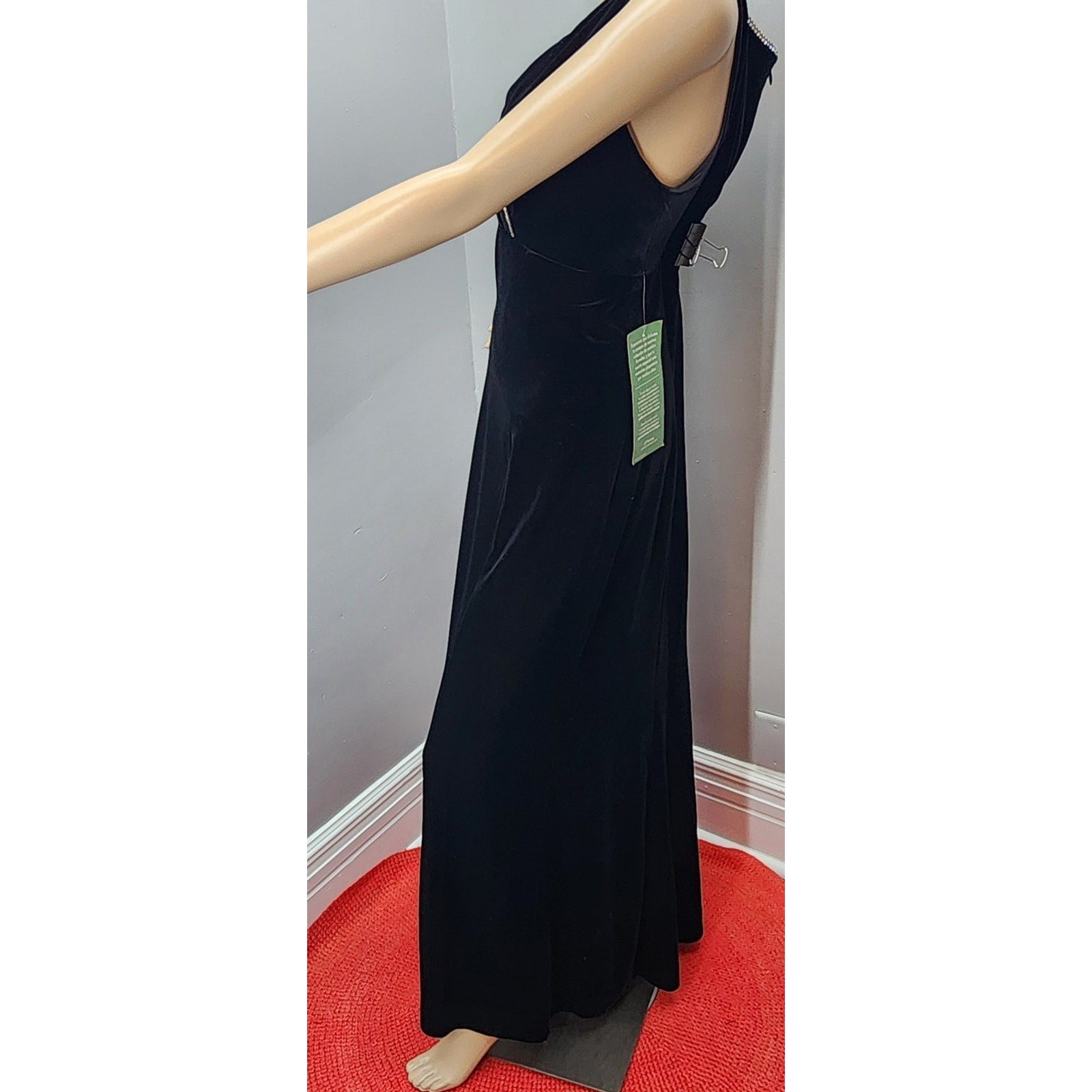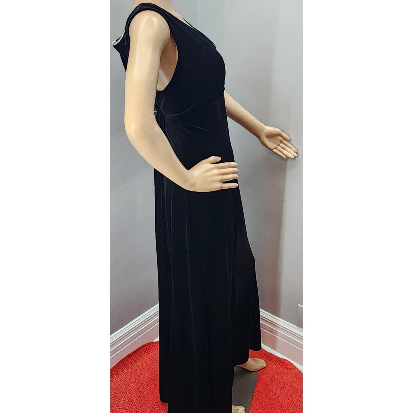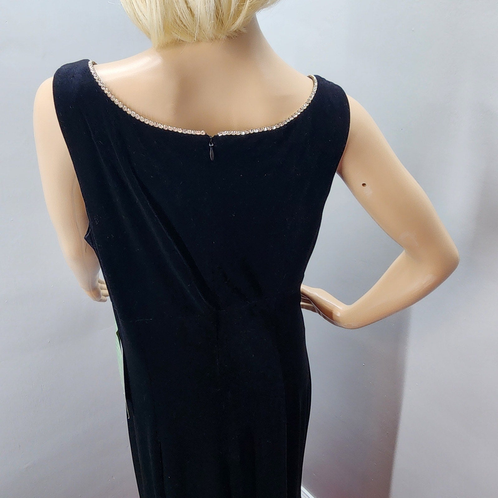 90s Vintage Black Tie Velour Rhinestone Gown - M