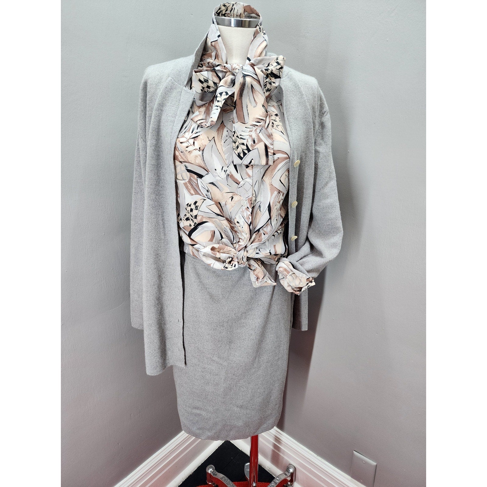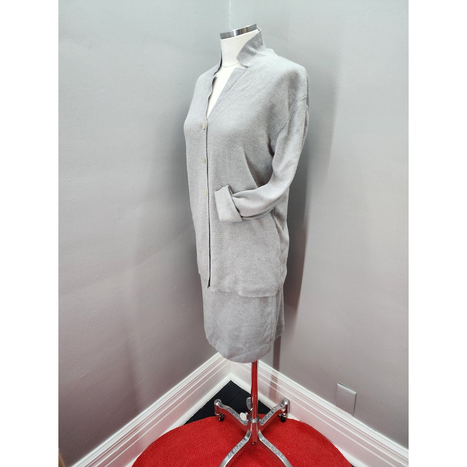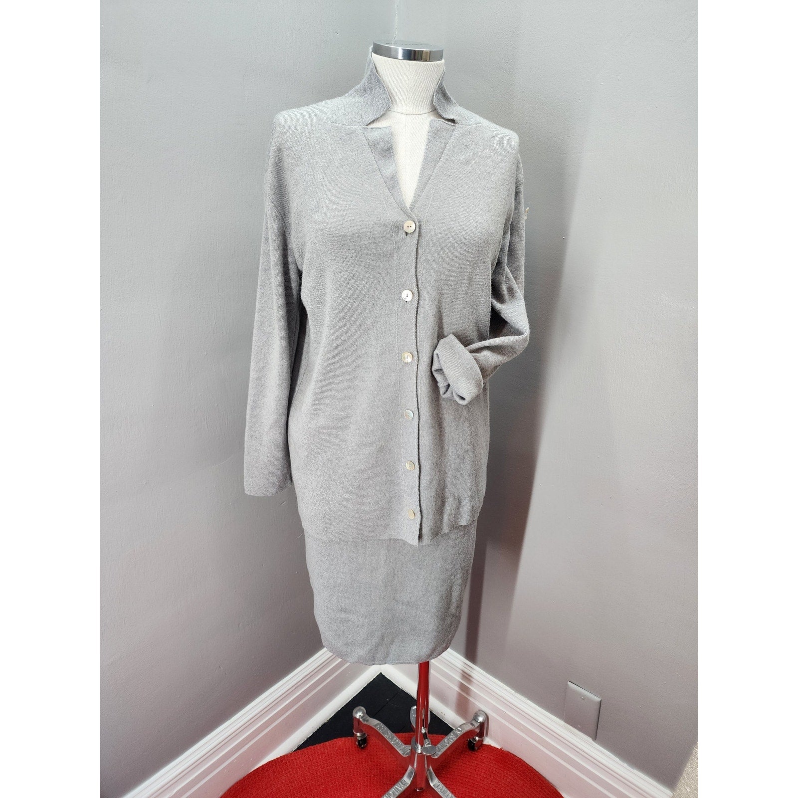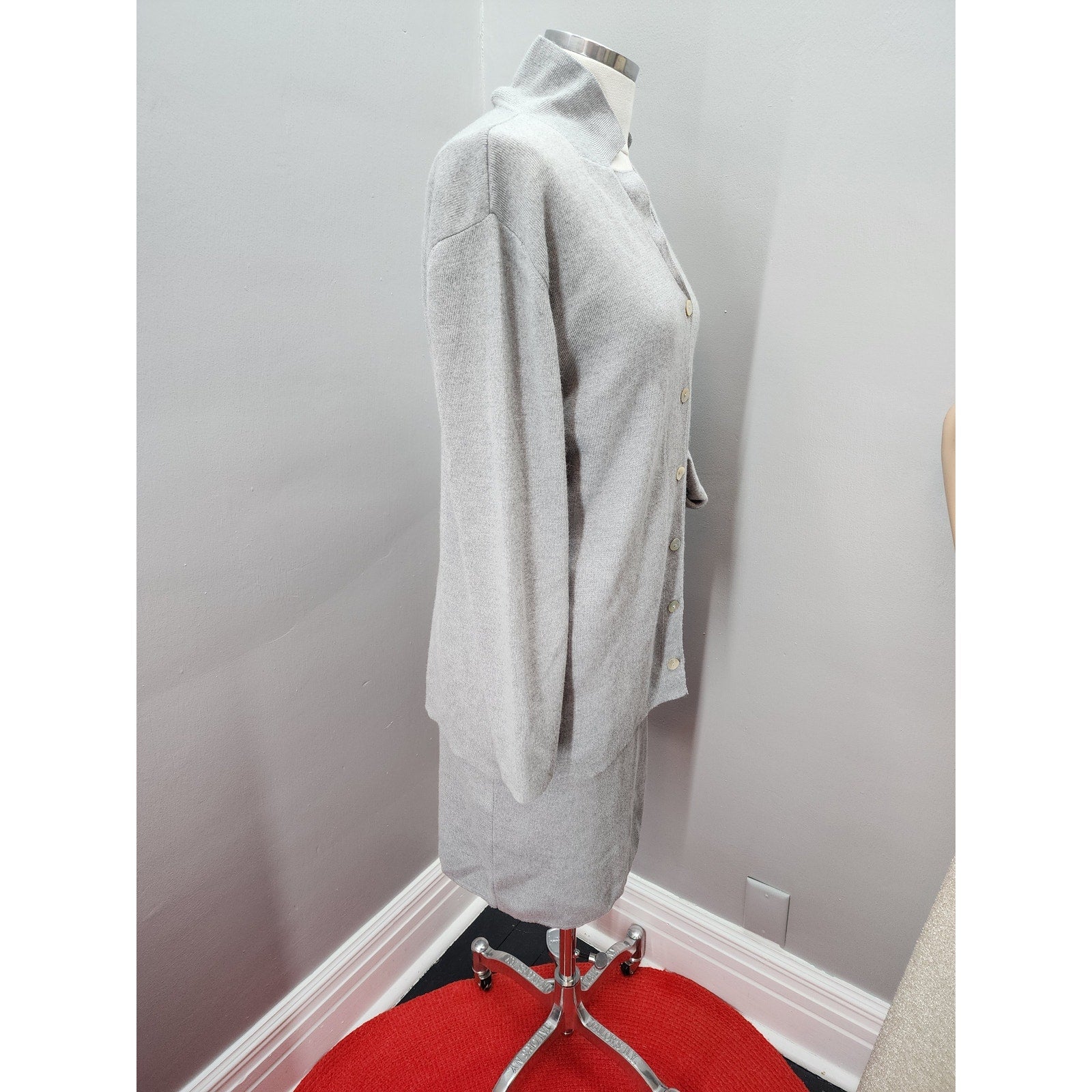 Silvia Novelli Light Gray Merino Wool Blend Skirt / Cardigan Set - M