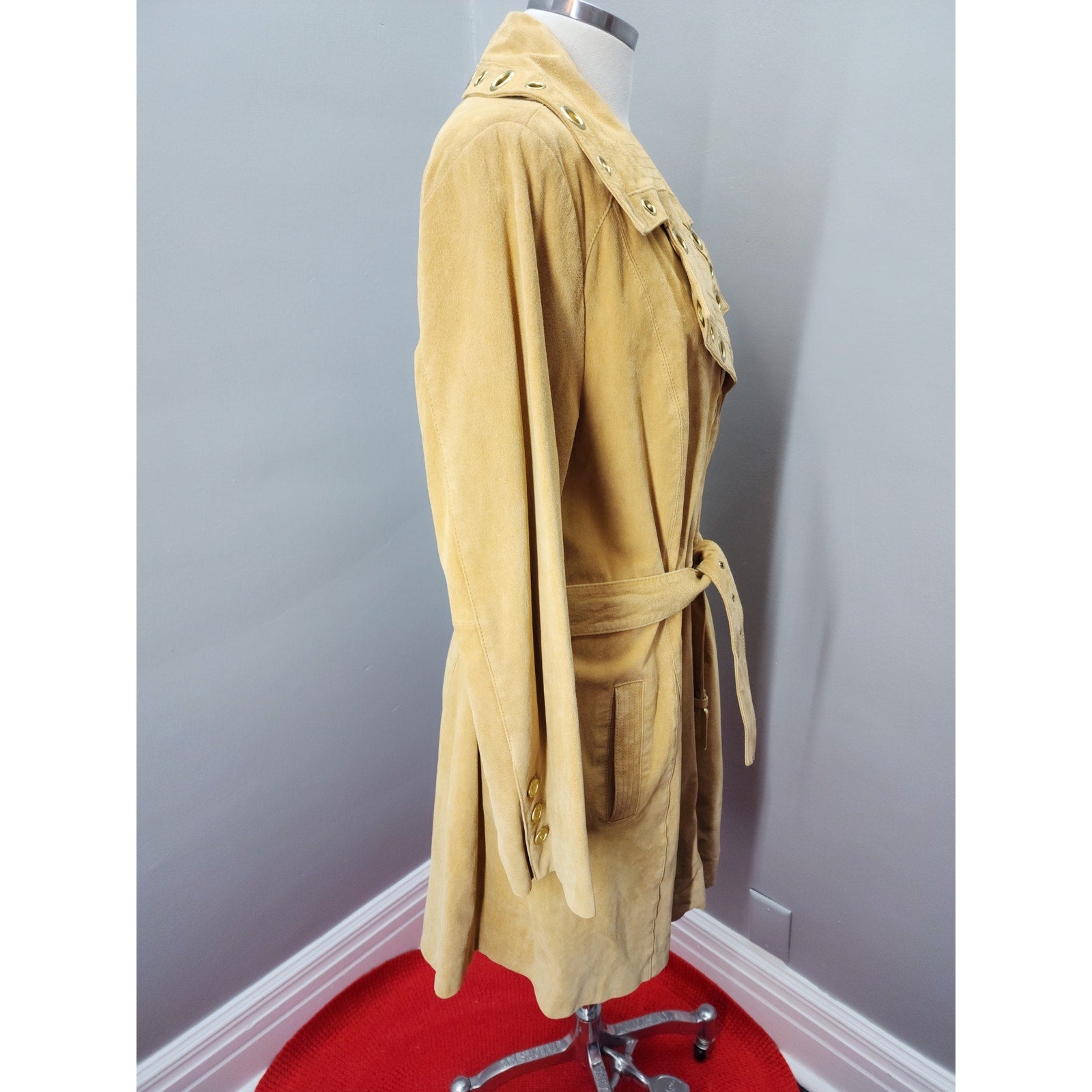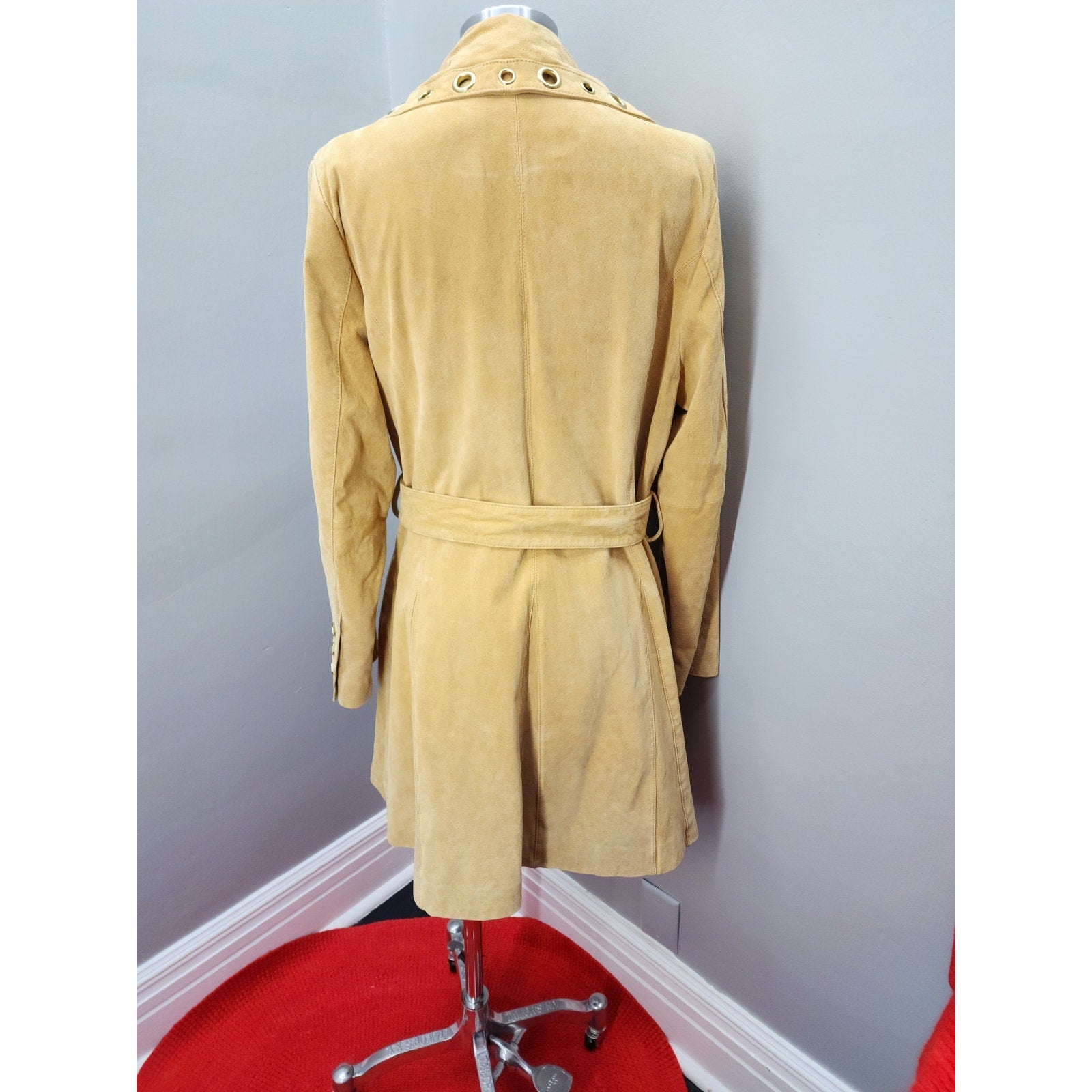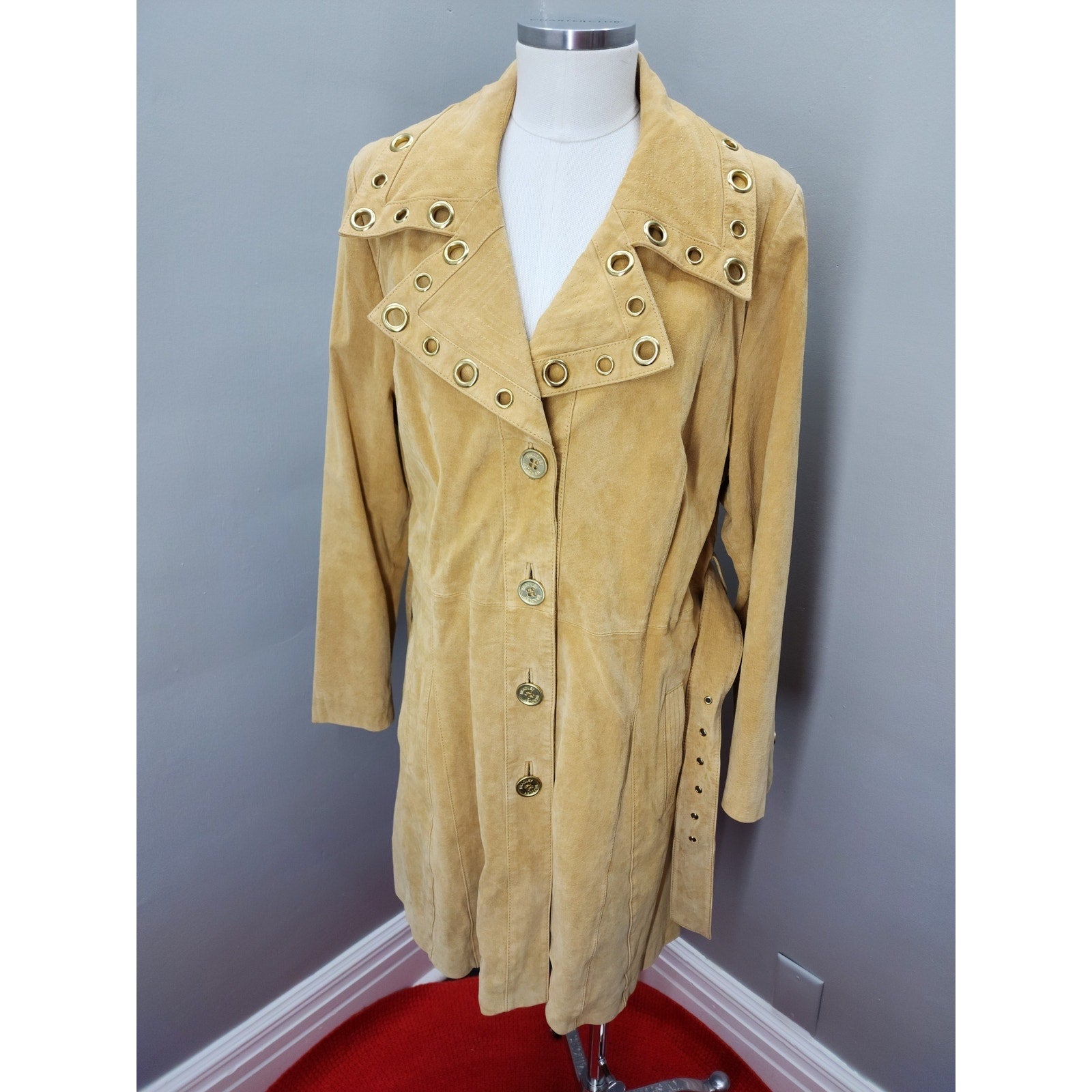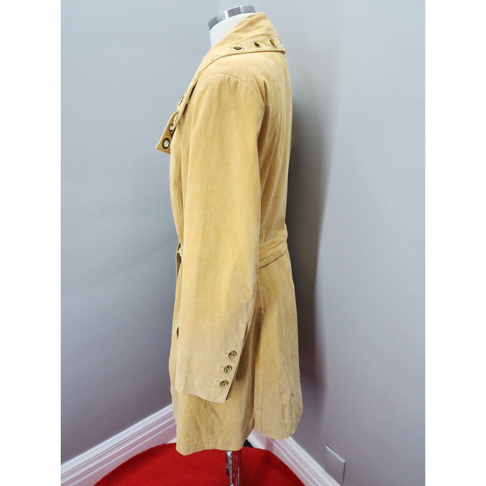 Y2K Vintage Bradley Bayou Suede Trench with Gold Grommets - XL