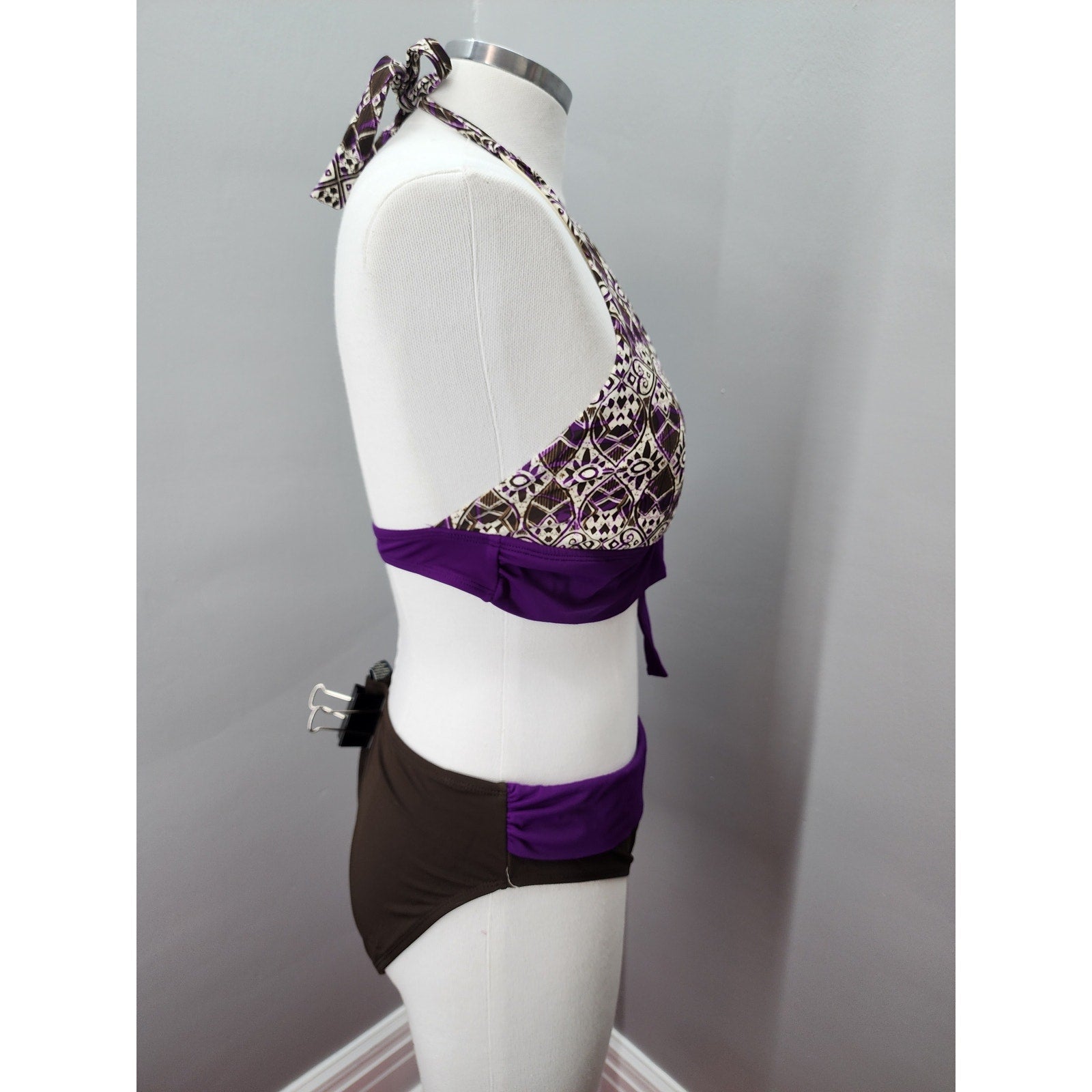 Y2K Vintage Faded Glory Bikini, Purple & Brown, NEW - XL