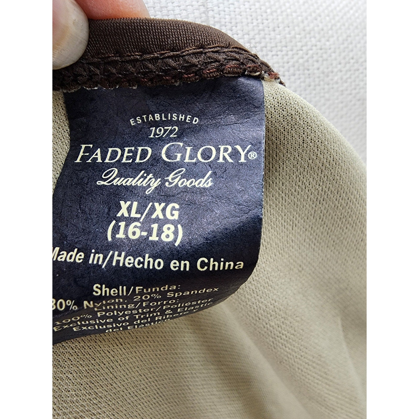 Tagged a vintage size XL (16/18), Polyester, spandex and nylon.
