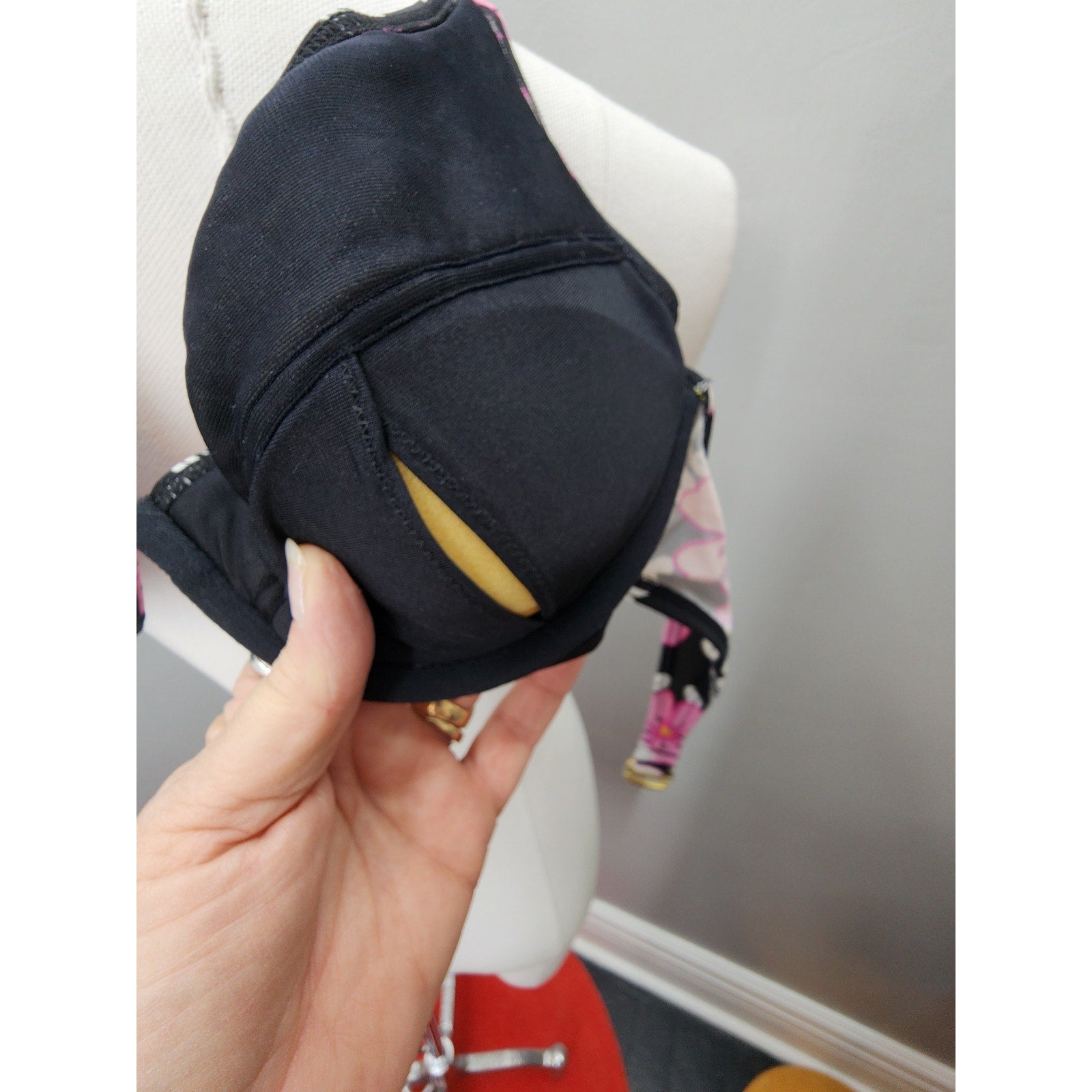 Halter underwire push-up top with accessible padding, hook closures. Tag removed.